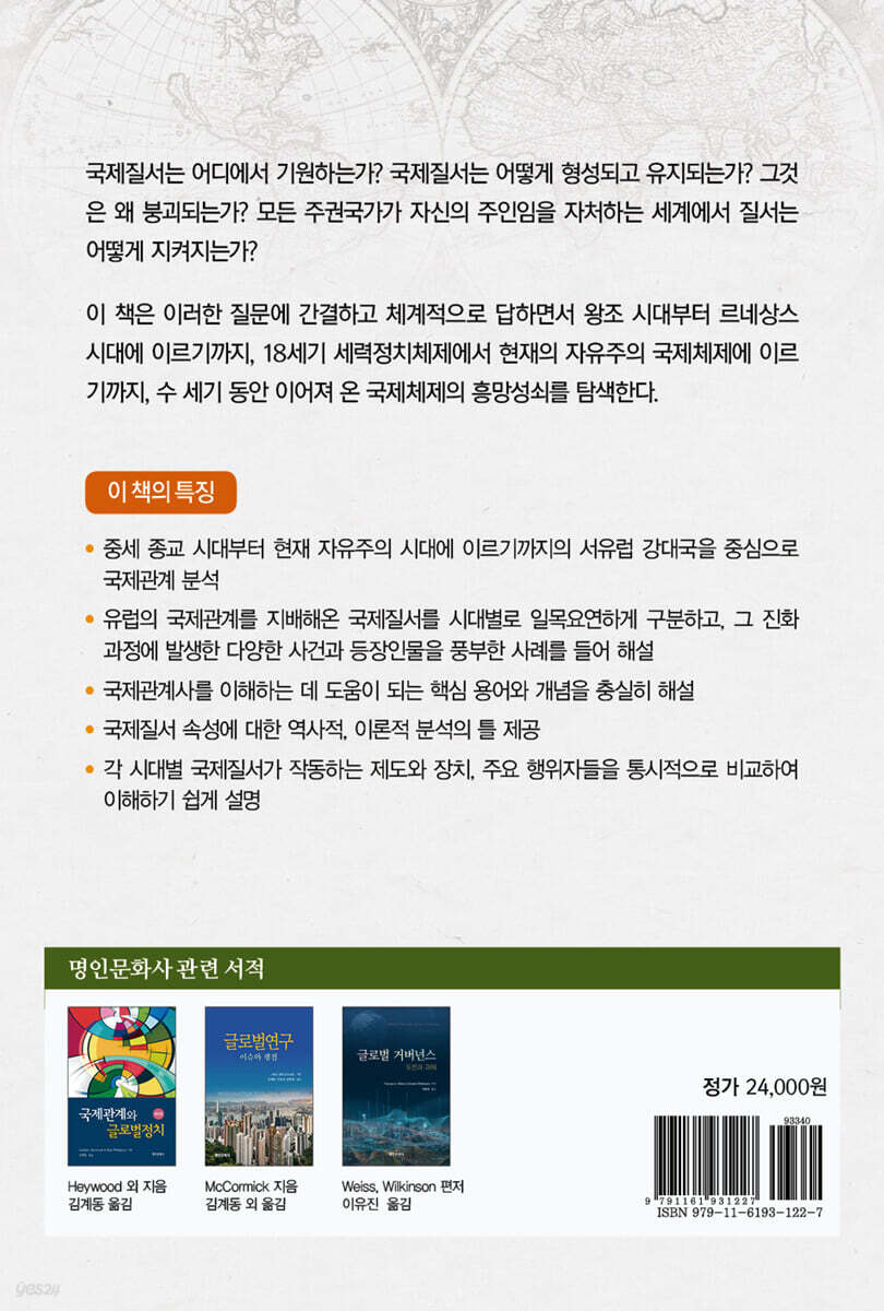 ㆍ유럽의 국제관계를 지배해온 국제질서를 시대별로 일목요연하게 구분하고, 그 진화 과정에 발생한 다양한 사건과 등장인물을 풍부한 사례를 들어 해설 ㆍ국제관계사를 이해하는 데 도움이 되는 핵심 용어와 개념을 충실히 해설 ㆍ국제질서 속성에 대한 역사적, 이론적 분석의 틀 제공 ㆍ각 시대별 국제질서가 작동하는 제도와 장치, 주요 행위자들을 통시적으로 비교하여 이해하기 쉽게 설명 |