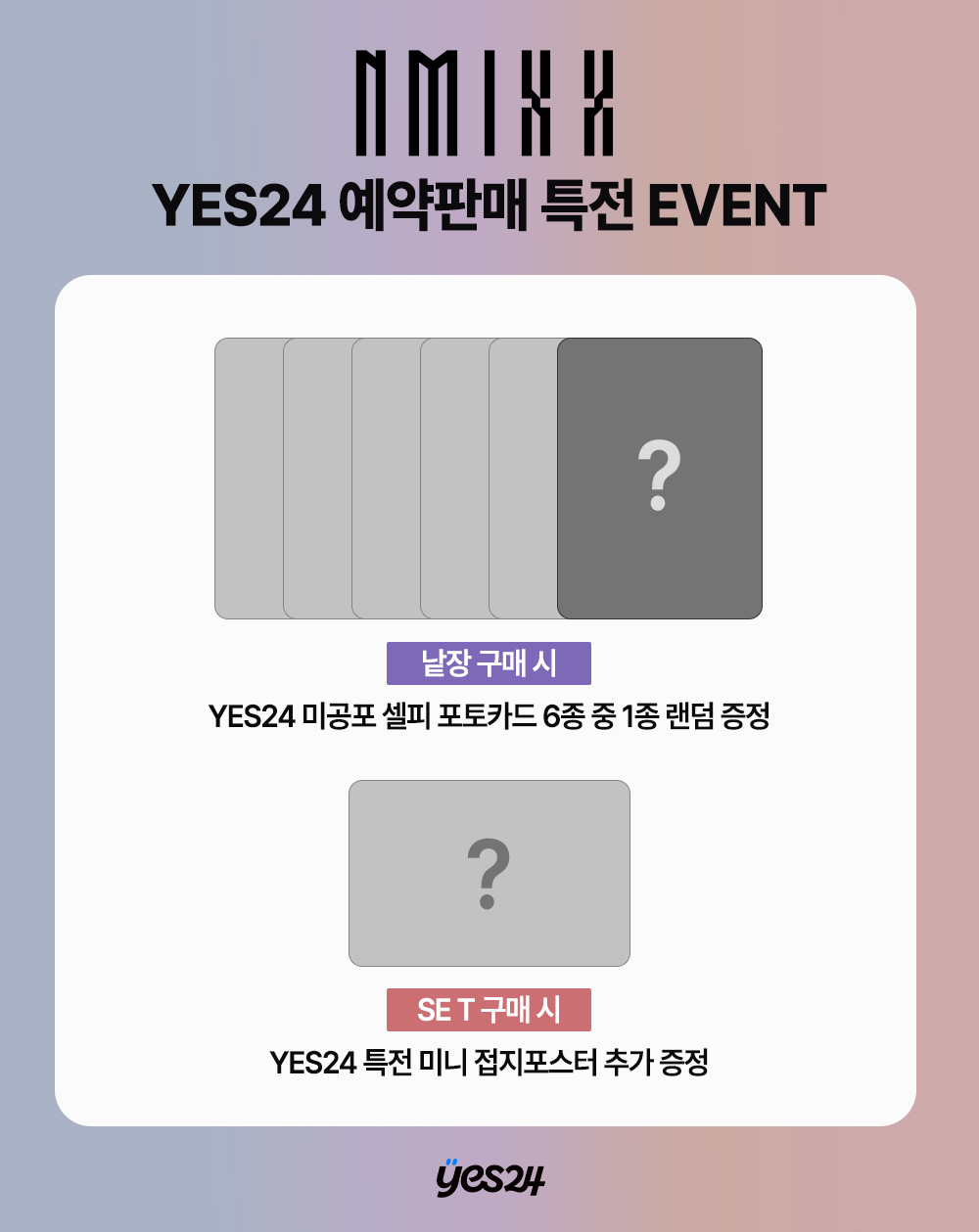2. 트레이 / 105*105mm * 트레이는 제작 공정상 판매 이미지와 상이할 수 있습니다. 3. 북릿 / 105*105mm / 48페이지 4. CD / 85*85mm 5. CD 봉투 / 85*85mm 6. 플립 북 / 105*105mm / 36페이지 7. 필름 엽서 / 105*105mm / 6종 중 랜덤 1종 8. 포토카드 / 55*85mm / 12종 중 랜덤 2종 9. 유닛 포토카드 / 55*85mm / 6종 중 랜덤 1종 |