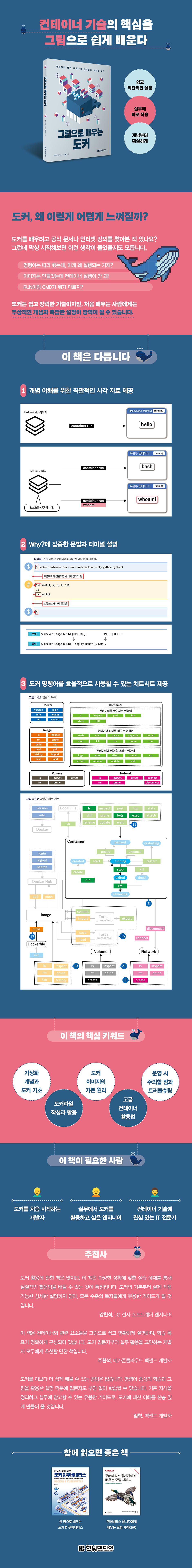 도커를 사용하는 엔지니어가 반드시 알아야 할 핵심 내용들을 이해하기 쉬운 그림과 상세한 명령어 실행 과정으로 설명한 점이 인상적이었습니다. 실제 사용자의 관점에서 학습 진입 장벽을 낮추기 위해 친절한 도식화와 실용적인 예제들을 제공하며, 도커의 개념을 쉽게 이해할 수 있도록 구성된 점이 돋보였습니다. 이런 점들이 이 책을 추천하게 만든 이유입니다. - 김신국 (Devops 엔지니어)