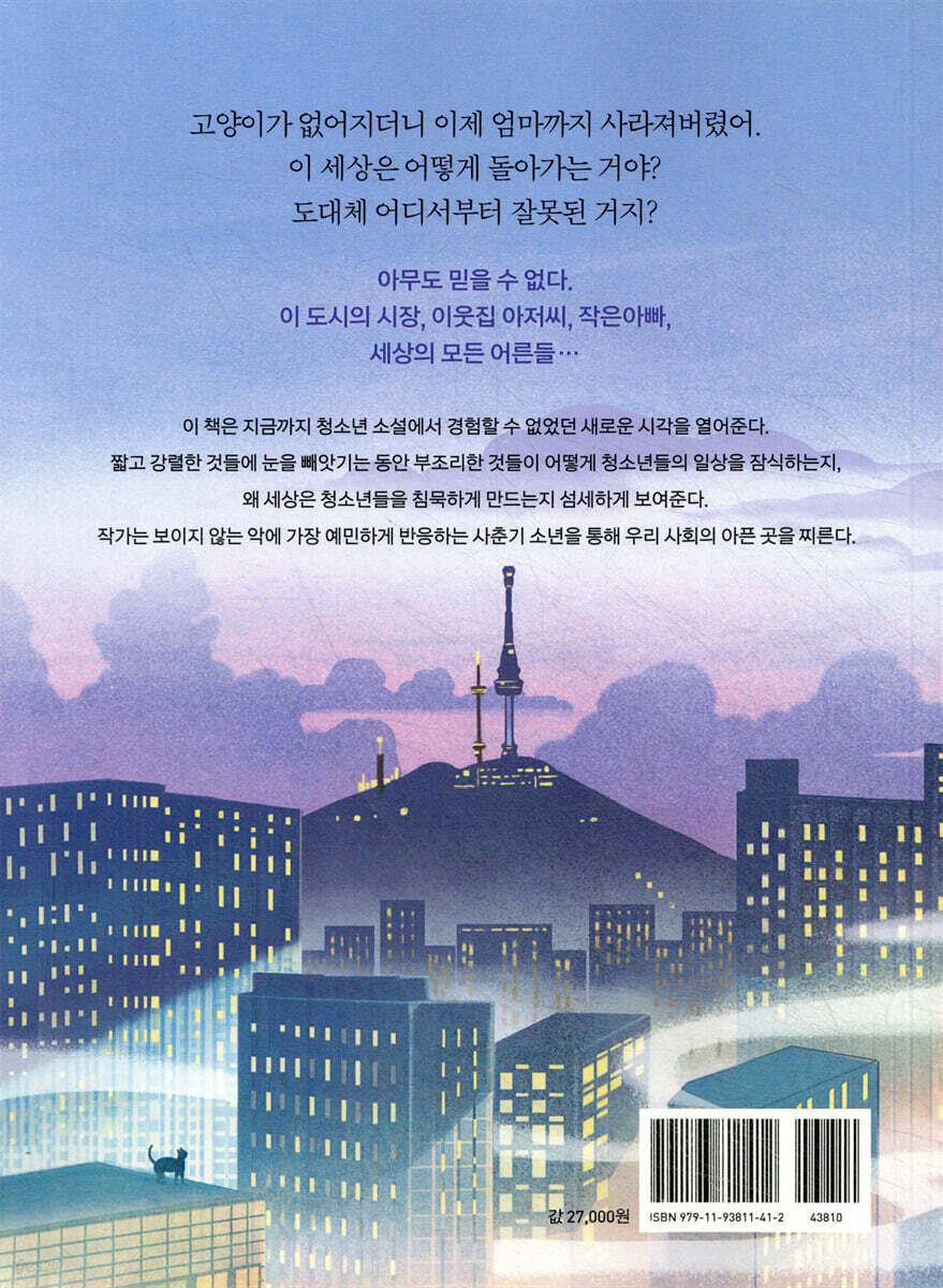 --- p.23 들어줄 때까지 할 거야. 사람들이 다 볼 때까지 포기하지 않을 거야. 우리 엄마를 그렇게 만든 사람들도 보게 만들 거야. 그럼 그 사람들은 어떨까? 마음이 불편하겠지, 사람이라면. --- p.70 우리가 뭘 할 수가 있어? 우리가 싸운다고 그놈들이 인정할 것 같아? 일개 개인의 말이 통하는 세상이라고 당신은 생각해? 어른들도 못 하는 일이야. 고작 중학생인 애 말을 누가 들어주겠어? 앞으로 우리는 민우의 보호자가 되어야 해. 민우가 잘 크도록 도와야 한다고. 그게 형님이 바라는 일일 거야. 난 민우를 잘 키울 거야, 평범하게 --- p.131 난 겨우 1년 차였어. 공무원이 되기까지 3년 동안 작은 방에 틀어박혀 얼마나 공부만 했는지 넌 모를 거야. 잘못 문제를 일으켰다가 불이익을 받고 싶지 않았어. 게다가 환시, 환청이라니. 그런 건 개인적인 병일 수도 있잖아. 그 증거로 수십 개의 시에서 딱 네 명밖에 안 나왔다는 거잖아. 그래서 거절했어. --- p.173 그게 비밀에 부쳐져 있어. 그걸 쉬쉬하는 게 무슨 뜻이겠니? 안락사가 아니라는 거야. 고양이들에게 고통이 없지는 않다는 거지. 시장은 지금 간절해. 내년 지방 선거 때문에라도 고양이를 안락사시키지 않았다는 것도, 안정성을 검토하지도 않고 일을 빨리 마무리하기 위해 약을 수입해 온 것도 알려져서는 안 되거든. --- p.210 |