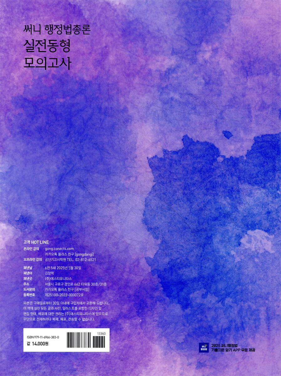 오랫동안 ‘동형 모의고사’는 회차별 유인물을 강의자료로 제공해 왔습니다만, 계속되는 출간 요청에 2020년에 이르러서 『2020 써니 행정법총론 실전동형 모의고사』라는 이름의 교재로 첫선을 보였습니다. 그동안 많은 수험생들의 선택을 받았던 기대에 부응하고자 한층 업그레이드된 『2025 써니 행정법총론 실전동형 모의고사』를 출간합니다. 시험 전 꼭 확인해야 할 키워드들로 모의 문제를 구성하고, 낯선 지문도 함께 훈련할 수 있도록 문제를 안배함으로써 실전 적응 능력을 극대화하는 것이 본서의 가장 큰 역할이라 하겠습니다. 기본서와 기출문제집을 학습한 다음 전 범위 모의 문제를 통해 실전처럼 풀어보시기 바라며, 이 책이 합격으로 가는 여러분의 길에 조금이나마 도움이 되기 바랍니다.