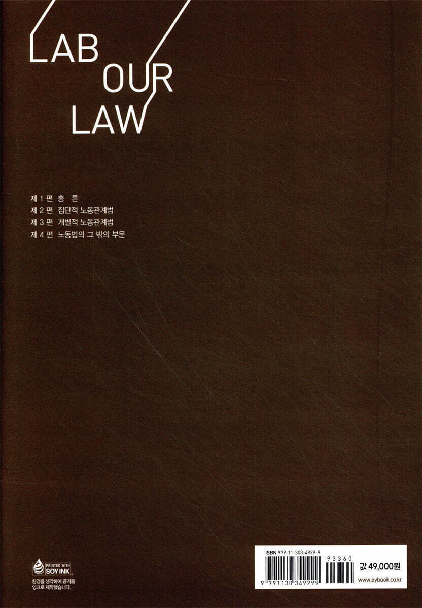제1장 노동법의 의의 3 제2장 헌법의 노동조항 19 제3장 노동법상 권리·의무의 주체 35 제2편 집단적 노동관계법 제1장 노동조합 49 제1절 노동조합의 조직형태 49 제2절 노동조합의 보호요건 52 제3절 노동조합의 운영 70 제4절 노동조합 조직의 변동 101 제2장 단체교섭 106 제1절 단체교섭의 의의 106 제2절 단체교섭의 주체 109 제3절 단체교섭의 대상 126 제4절 단체교섭의 방법 136 제3장 단체협약 139 제1절 단체협약의 의의와 성립 139 제2절 단체협약의 효력 146 제3절 단체협약의 적용 165 제4절 단체협약의 실효 175 제4장 쟁의행위 및 조합활동 182 제1절 쟁의행위의 개념 182 제2절 쟁의행위에 대한 노동조합법의 규율 188 제3절 쟁의행위의 정당성 207 제4절 위법한 쟁의행위와 법적 책임 223 제5절 쟁의행위와 근로계약관계 230 제6절 조합활동 238 제7절 직장폐쇄 247 제5장 노동쟁의의 調整 254 제6장 부당노동행위제도 271 제1절 부당노동행위제도의 의의 271 제2절 부당노동행위의 성립요건 274 제3절 부당노동행위의 행정적 구제 301 제4절 부당노동행위의 형사제재와 민사구제 316 제7장 교원·공무원의 단결활동 322 제3편 개별적 노동관계법 제1장 근로기준법 335 제2장 노동관계 규율의 기초 348 제1절 근로계약 348 제2절 취업규칙 356 제3절 노동관계의 기본원칙 373 제3장 노동관계의 성립 390 제4장 노동관계의 전개 403 제1절 임금 403 제2절 근로시간과 휴식 435 제3절 안전과 보건 487 제4절 재해보상 493 제5절 이동인사·휴직·징계 520 제6절 사업주변경과 노동관계 543 제5장 노동관계의 종료 551 제1절 해고 551 제2절 해고 이외의 노동관계 종료사유 576 제3절 노동관계 종료에 따른 법률관계 587 제6장 연소자와 여성 609 제7장 비정규근로자 628 제8장 부당해고등의 구제 및 차별의 시정 653 제4편 노동법의 그 밖의 부문 제1장 노동위원회제도 673 제2장 노사협의제도 683 제3장 실업급여제도 693 |