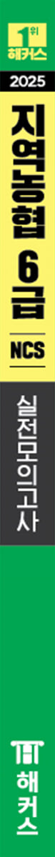 주간동아 2024 한국고객만족도 교육(온/오프라인 취업) 1위 최신 출제경향을 완벽 반영한 실전모의고사로 지역농협 6급 필기시험 실전 완벽 대비! [이런 분들에게 추천합니다] 1. 단번에 지역농협 6급 필기전형에 합격하고 싶은 분들 2. 실제 시험과 동일한 유형 및 난이도로 구성된 모의고사 6회분으로 단기간에 실전 감각을 극대화하고 싶은 분들 3. NH지역농협/지역축협/품목농협/품목축협 시험을 모두 대비하고 싶은 분들 [해커스 교재만의 특장점] 1. 지역농협 6급 NCS(직무능력평가)의 최신 출제경향 및 기출유형을 전격 반영하였습니다. 가장 최근 시행된 지역농협 6급 NCS의 출제경향을 철저히 분석하여 반영하였습니다. 2. 실전모의고사 6회분으로 빈틈없이 실전에 대비할 수 있습니다. 1) 실전모의고사 시험 유형별로 실제 시험과 동일한 문제 유형 및 난이도로 구성된 NCS 실전모의고사 6회분(60문항/70분 2회분 + 60문항/60분 2회분 + 70문항/70분 2회분)을 제한시간 내에 풀어보면서 실전에 철저히 대비할 수 있습니다. 2) OMR 카드 실제 시험처럼 교재 마지막에 수록된 OMR 카드에 직접 답을 체크하며 실전 감각을 극대화할 수 있습니다. 3. 자신의 상황에 맞는 [맞춤 학습 플랜]을 통해 전략적으로 학습할 수 있습니다. 단기 학습이 가능한 ‘3일 완성 학습 플랜’과 하루에 1회씩 꼼꼼하게 학습할 수 있는 ‘6일 완성 학습 플랜'을 모두 제공합니다. 필요한 학습 기간에 맞는 플랜을 선택하여 전략적으로 학습할 수 있습니다. 4. [무료 바로 채점 및 성적 분석 서비스]와 [취약 영역 분석표]로 전략적인 학습이 가능합니다. 1) 무료 바로 채점 및 성적 분석 서비스 - 회차별(1~6회) 마지막 페이지에 수록된 QR코드를 인식하여 답안을 입력하기만 하면 간편하게 채점할 수 있습니다. - 응시 인원 대비 본인의 성적 위치를 확인하고 합격 가능성까지 예측할 수 있습니다. 2) 취약 영역 분석표 ‘약점 보완 해설집’에 수록된 ‘취약 영역 분석표’를 통해, 영역별로 극복해야 할 취약점을 정확히 파악하여 보완할 수 있습니다. 5. 상세한 해설이 담긴 [약점 보완 해설집]으로 정답률을 높이고 문제 풀이 시간을 단축할 수 있습니다. 1) 오답 체크 정답에 대한 해설뿐만 아니라 오답의 이유까지 꼼꼼히 분석해주기 때문에, 맞힌 문제와 틀린 문제를 모두 확실하게 학습할 수 있습니다. 2) 빠른 문제풀이 Tip 문제를 빠르고 정확하게 풀이하는 노하우를 익히며 문제 풀이 시간을 단축할 수 있습니다. 3) 더 알아보기 문제와 관련된 모듈이론 및 추가 개념까지 한 번에 학습할 수 있습니다. [지역농협 최종 합격을 위한 해커스만의 추가 학습 콘텐츠 - 해커스잡(ejob.Hackers.com)] 1. 본 교재 인강(교재 내 할인쿠폰 수록) 2. 인적성검사 모의 테스트(PDF) 3. 지역농협 6급 합격 족보(PDF) 4. 무료 바로 채점 및 성적 분석 서비스 5. 지역농협 6급 온라인 모의고사 6. 모듈이론공략 200제(PDF) |