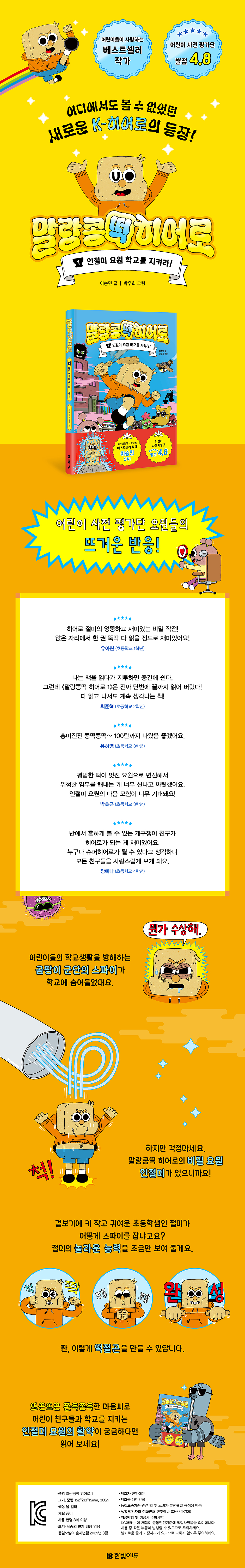 히어로 절미의 엉뚱하고 재미있는 비밀 작전! 앉은 자리에서 한 권 뚝딱 다 읽을 정도로 재미있어요! - 유아린 (초등학교 1학년)