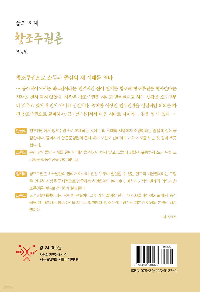 제1장 일어섬 11 1-1 창조주권을 말한다 13 1-2 창조주권의 근거 18 1-3 더 깊은 층위 21 1-4 어디서나 26 1-5 일상생활의 창조주권 29 1-6 의식주 33 1-7 시대변화 37 1-8 인공지능과의 경쟁 41 1-9 바이러스 역병 45 1-10 천부인권과 창조주권 50 1-11 정치주권과 창조주권 54 1-12 소통·협동·봉사 60 1-13 대등사회가 자랑스럽다 64 1-14 시민의식과 대등의식 69 1-15 반면교사의 가르침 74 1-16 멀리 있는 반면교사 77 1-17 학문의 역전 82 1-18 세계를 둘러보며 86 1-19 또 하나의 재앙 90 1-20 창조주권 더 크게 94 제2장 나아감 97 2-1 앎은 스스로 얻는다 99 2-2 누구나 영재이다 103 2-3 각양각색 108 2-4 언어능력 113 2-5 학문과 예술의 원천 116 2-6 모두 아울러 120 2-7 모국어와 외국어 123 2-8 영어를 공용어로 하자는 망상 128 2-9 영어가 공용어인 나라 132 2-10 학문을 하는 언어 136 2-11 유럽중심주의 넘어서기 141 2-12 무엇이 문제인가? 144 2-13 허구의 실상 149 2-14 세계문학사 이해 바로잡아야 153 2-15 고향으로 156 2-16 현지조사의 경과 160 2-17 율격론 164 2-18 서사구조 167 2-19 문학과 사상 171 2-20 새로운 학문 175 제3장 나타냄 181 3-1 예술의 창조주권 183 3-2 민요의 고향 187 3-3 음악의 변질과 소생 190 3-4 음치와 명창 193 3-5 미술의 혼미 197 3-6 잃어버린 유산 200 3-7 인상파 이후의 일탈 203 3-8 망가진 모습 206 3-9 어디까지 가는가? 210 3-10 내 그림 214 3-11 누가 이인인가? 218 3-12 편지 글의 감동 221 3-13 규방가사의 교훈 224 3-14 길을 찾아야 228 3-15 고금의 시조 232 3-16 춘향을 잡으러 가니 235 3-17 신판 수궁가 〈똥바다〉 240 3-18 춤 대목의 계승 244 3-19 히피와 탈춤 247 3-20 소설, 영화, 다음 것 251 제4장 고침 257 4-1 왜 ‘고침’인가? 259 4-2 알아듣는 능력 262 4-3 선출직의 임무 264 4-4 관료주의와의 싸움 267 4-5 전문직 270 4-6 지방자치단체 273 4-7 교육 바로잡기 276 4-8 교과서를 없애자 278 4-9 대학입시 281 4-10 대학교육 284 4-11 박사의 수준 286 4-12 연구교수 289 4-13 학술총괄원 292 4-14 공개강의 294 4-15 도서관 297 4-16 문화복지 300 4-17 미술관과 공연장 303 4-18 대등종교학 305 4-19 자연을 받들어야 309 4-20 인류의 행복을 위하여 311 어떻게 살아야 하는가? 315 나가며 322 |