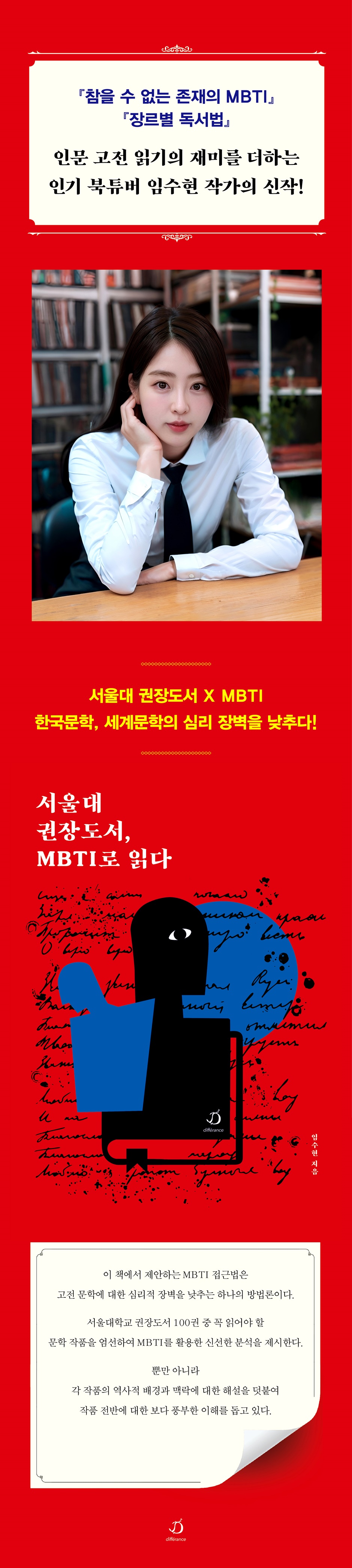 문학을 읽는 많은 이유 중 하나는, 타인을 이해해 보고자 하는 노력이 아닐까? 소설 속 등장하는 다양한 군상을 통해 간접적으로나마 현실의 누군가를 이해할 수도, 마침 궁금해하는 그 사람과 비슷한 성향의 캐릭터가 등장하는 소설이라면 더 몰입하게 될 수도 있을 것이다. 때로 조금이라도 그 사람을 용서할 수도 있게 되는, 마음의 안식을 선사하는 방편인지도 모르겠다. 임수현 작가의 전작 『참을 수 없는 존재의 MBTI』에서는 작품의 서사를 이끌어 가는 중심인물에 초점을 맞췄다면, 이번 책에서는 각 인물들의 MBTI와 그들 사이의 상호작용에 관해 분석하고 있다. 이야기의 기승전결을 가능하게 하는 시발점은 캐릭터이다. 그런 성향이 아니었던들 사건의 전개는 다른 양상이었을 수 있다. 그렇듯 캐릭터는 각자가 지닌 인생방정식 안에서 타인과 엮여 있는 양상에 관한 술어이기도 하다. |