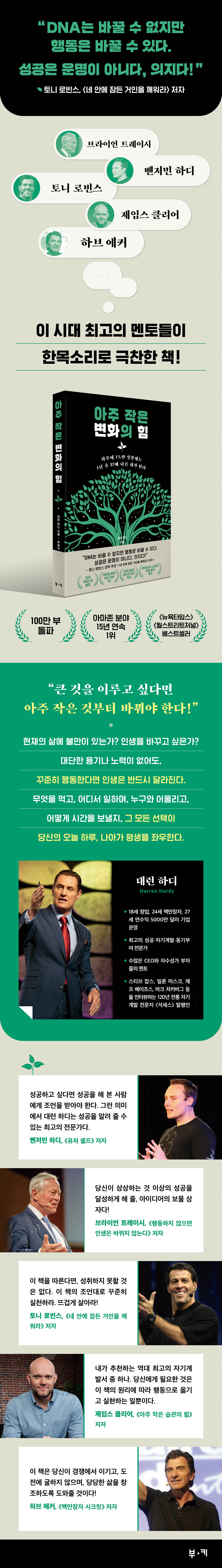 성공하고 싶다면 성공을 해 본 사람에게 조언을 받아야 한다. 그런 의미에서 대런 하디는 성공을 알려 줄 수 있는 최고의 전문가다. - 벤저민 하디 (《퓨처 셀프》 저자)