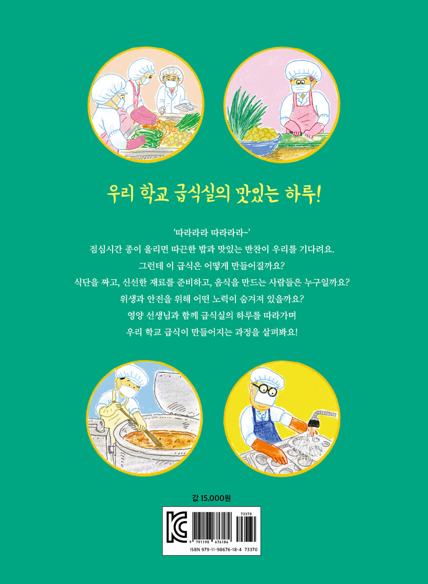 한 끼 속 숨은 노력과 정성, 맛있게 알아가는 급식의 모든 것! 이 책을 쓴 이은영 선생님은 오랫동안 학교 급식 현장에서 영양 선생님으로 일하며 아이들의 건강한 식단을 책임져 온 급식 전문가예요. 아이들이 먹는 한 끼를 위해 얼마나 많은 사람들이 정성을 쏟고 있는지, 그리고 급식이 어떤 과정을 거쳐 우리에게 오는지를 누구보다 잘 알고 있지요. 《우리 학교 급식은 어떻게 만들어질까요?》는 영양 선생님과 조리 선생님뿐만 아니라, 급식을 만드는 과정 속에 숨은 여러 사람들의 노력을 생생하게 담았어요. 이 책에는 우리가 평소 잘 알지 못했던 급식실의 흥미로운 비밀들도 담겨 있어요. 예를 들면, 조리사들이 착용하는 앞치마와 장갑의 색깔이 역할에 따라 다르다는 점, 도마와 칼의 색상이 식재료별로 구분된다는 점, 건강한 식단을 만들기 위해 영양사가 고려하는 요소들 등 다양한 이야기가 펼쳐집니다. 이갑규 작가의 그림은 이런 과정들을 더욱 생생하게 보여 줍니다. 조리사들이 위생 규칙을 지키며 정성껏 요리하는 모습, 색깔별로 나뉜 도마와 칼이 쓰이는 장면, 따뜻한 밥과 반찬이 완성되는 과정 등을 꼼꼼하게 표현해 아이들이 쉽게 이해할 수 있도록 했어요. 또한, 건강한 식습관을 위한 영양 상식도 책 곳곳에 담겨 있어요. 왜 골고루 먹는 것이 중요한지, 채소와 과일이 우리 몸에 어떤 좋은 영향을 주는지 등 아이들이 흥미롭게 읽을 수 있도록 친근하고 쉬운 설명과 함께 소개됩니다. 이 책을 읽고 나면, 날마다 먹는 급식이 더 특별하고 맛있게 느껴질 거예요. |
