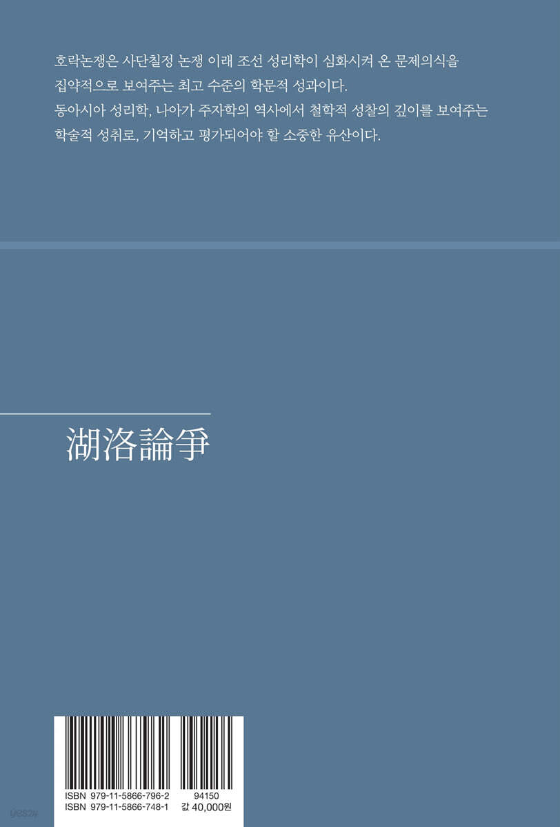 1. 호락논쟁의 정의 2. 호락논쟁 연구사 검토 2장 호락논쟁의 시기 구분과 주요 쟁점 1. 호락논쟁의 시기 구분 2. 호락논쟁의 쟁점에 대해 3장 호락논쟁의 배경 1. 정치 사회적 배경 2. 조선 성리학의 전개와 호락논쟁 4장 기본 개념과 명제들 1. 리와 기 2. 본성과 마음 3. 성인 5장 호락논쟁의 태동: 호학과 낙학 종지의 형성 1. 호락논쟁의 서곡: 태극 논변 2. 충막무짐 논변 3. 김창협의 본성[性]에 대한 초기의 두 견해 4. 김창협의 낙학적 사유 형성 5. 호학과 낙학의 정신과 지향의 차이 6장 호학과 낙학의 성립: 주요 논점의 형성 1. 지각 논변 2. 인물성동이 논변 3. 미발 논변 4. 성범심동이 논변 7장 호락논쟁의 성립 1. 심조의 김창흡 비판과 그에 대한 한원진의 평 2. 심조와 한원진 사이의 허령·명덕에 대한 논란 3. 심조와 이재 사이의 심순선 논변 4. 이재와 윤봉구 사이의 심설 논변 5. 이재의 「한천시」와 한원진의 「제한천시후」 6. 한원진의 「제한천시후」에 대한 이재 문하의 대응 7. 낙학의 동향에 대한 호학 측의 대응 8장 호락논쟁의 종장 1. 김원행의 낙론 이해 2. 황윤석의 호락논쟁에 대한 역사적 기술 3. 강정환의 한원진 비판 4. 녹문 임성주 5. 노주 오희상 6. 매산 홍직필 7. 노사 기정진 9장 결론: 논쟁의 정리와 의의 1. 주자학: 위기의 시대, 희망의 철학 2. 사대부의 철학 3. 도덕적 우주론 4. 이상과 현실: 리와 기 5. 호락논쟁의 주제: 인간, 그 마음과 본성 6. 호학과 낙학의 정신 7. 호락논쟁의 의의: 18세기의 지평에서 8. 동아시아 전통 주자학의 최종적 성취 |