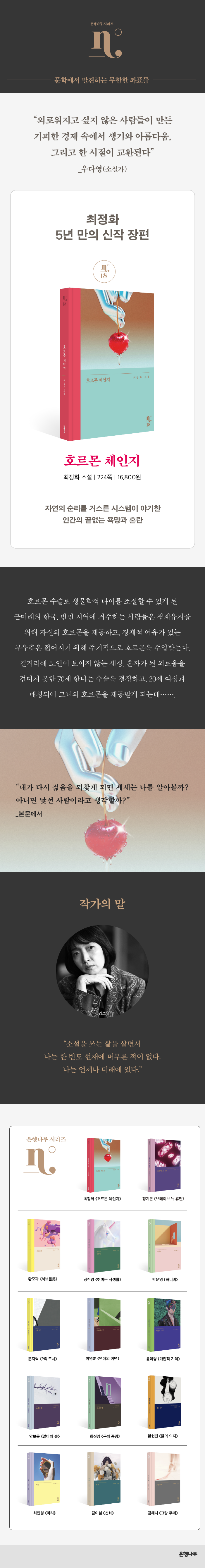 젊음만을 추앙하게 하는 사회를 향한 예리한 비판 ‘호르몬 리버스’는 호르몬 수술 전문 병원이다. 이곳에 입원해 있는 ‘바이어’들은 모두 ‘셀러’를 기다리고 있다. 자신의 생물학적 나이를 젊게 되돌려줄 미래 세대, 가장 적합하고 알맞은 맞춤형 호르몬 제공자를. 바이어의 신체에 딱 맞는 타인의 호르몬을 찾기란 사실상 불가능하다. 때문에 수많은 검사를 거쳐 바이러스 감염과 기타 질환, 알레르기 등을 일으킬 확률이 가장 낮은 셀러를 선별한다. 여러 차례의 테스트 끝에 대상자가 매칭되면 바이어는 마침내 호르몬 수술을 받을 수 있게 된다. 큰 비용이 들지만, 그만큼 확실한 젊음을 보장하는 수술. 이제 거리는 젊은이들로 넘쳐나고, 노인들은 타인의 시선을 견디지 못해 밤늦은 시간 어두운 골목만을 찾아 걷는다. “비아냥거리는 소리를 못 들은 척하고 지나가는 일엔 어느새 무덤덤해졌다. 정작 견디기 어려운 건 수술을 받은 친구들이 이십대로 돌아가는 바람에 혼자가 되고 만 외로움이었다. 인간은 이제 노화가 무엇인지 모른다. 하얗게 바랜 머리카락, 깊게 파인 주름, 드문드문 검버섯이 올라온 피부, 굽은 등허리 같은 것들을 본 적이 없다. 만약 노인이 길거리를 지나다닌다면 동물원 우리를 탈출한 원숭이와 다름없는 볼거리가 될 것이다.” _8쪽 입원부터 검사, 수술 및 유지 과정 전반에 걸쳐 엄청난 비용이 들어가는데다 셀러와 바이어 모두에게 신체적 위험 부담도 크지만, 그럼에도 불구하고 수술은 성행한다. 수요가 많은 만큼 생계유지가 어려운 사람들은 자신의 건강을 기꺼이 헐어 그들에게 호르몬을 제공한다. 목숨을 담보하고서라도 가족들을 챙기고 돌볼 돈이 필요하기 때문이다. 당장 먹고살 방법이 없는 사람들에겐 별다른 선택권이 없다. 한편 자연의 순리를 거스르고 싶지 않았던 70세 노인 ‘한나’는 자연스럽게 늙어가는 삶을 택한다. 하지만 주변 친구들이 모두 호르몬 수술을 받고 한나의 곁을 떠나버리자, 외로움을 견디지 못하고 호르몬 수술을 결정한다. 한나는 젊음 자체에 대한 욕심보다 외로움으로부터 벗어나고 싶다는 마음이 더 컸기에 사오십대로 셀러 매칭을 신청하지만 덜컥 스무 살 여성과 매칭이 된다. 젊은 시절 너무나 바쁘게 살아온 탓에 이십대를 제대로 누리지 못했던 한나는 다시 찾아온 스무 살이 설레면서도 자신의 이런 욕망이 낯설고 두려워 혼란한 마음에 사로잡히는데……. “그 영화 좋아했다던 친구, 그리워요?” (……) “그립지 않은 친구가 있을까요? 물론 남수랑은 아주 많이 친했죠. 우리가 헤어진 건 제가 그 친구를 이해하지 못했기 때문이에요. 그때 난 그 애가 잘못된 길로 가고 있다고 생각했죠. 지금은 잘 모르겠어요. 저도 그 친구와 같은 잘못을 저질렀는걸요. 이젠 그 애를 탓할 자격이 제겐 없어요.” _52쪽 일견 어두워 보이는 우리의 미래를 끝끝내 유토피아로 견인할 이야기 탄력 있는 피부와 주름 하나 없는 목, 획일화된 아름다움. 나이에 비해 젊어 보여야 한다는 압박을 가하는 사회를 향해 최정화는 다음과 같은 근본적인 질문을 던진다. 이런 욕망을 개인의 문제만으로 치부할 수 있는지. 이들의 욕망을 충동한 진짜 주체가 무엇인지. 그리고 독자로 하여금 스스로 묻게 한다. 왜 우리는 나이 들어 보이면 안 되는지, 왜 있는 그대로 자연스럽게 늙어갈 수 없는지. 내면보다는 외면에 몰입하고 ‘잘 나이 드는 것’보다 ‘더 젊어지는 것’에 몰두한 사람들의 강박은 우리 삶에 매일 노출되는 미디어로부터 기인하고 키워진 것이다. 근미래를 배경으로 한 이 소설이 지금의 현실과 거듭 겹쳐 보이는 이유는 여기에 있다. 그럼에도 최정화의 세계는 희망을 잃지 않는다. 디스토피아의 복판에서도 더 나은 세상을 꿈꾸고, 약자를 외면하지 않고, 모든 생명과의 상생을 꿈꾸는 인물들이 끝끝내 ‘내일’을 포기하지 않으므로. 최정화의 소설은 일견 어두워 보이는 우리의 미래를 유토피아로 묵묵히 견인할 것이다. |