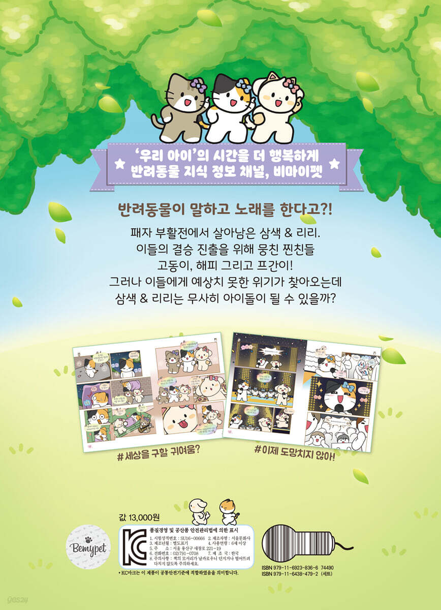 #12. 응, 너네 탈락이야 22 #13. 이건 반칙이지!! 40 #14. 내가 다 망쳤다옹... 58 #15. 인간의 사랑을 믿다니...멍청한 고양이 76 #16. 삼색이가 빡침+1을 얻었습니다 96 #17. 그래 봤자 여론은 못 엎어 114 #18. 망하는 건 너 하다나냥! 진짜 나락 예약?! 134 #19. 결국 우일 두고 결혼할 거야? 눈물 없인 못 본다 152 #같이 듣자! 삼색리믹스〈Don’t be Shy and Shine〉 172 #같이 듣자! 삼색리믹스〈세상이 야옹야옹〉 174 #같이 듣자! 삼색리믹스〈Super peace〉 176 #못다 한 이야기! 여기 쿠키 있다 178 |