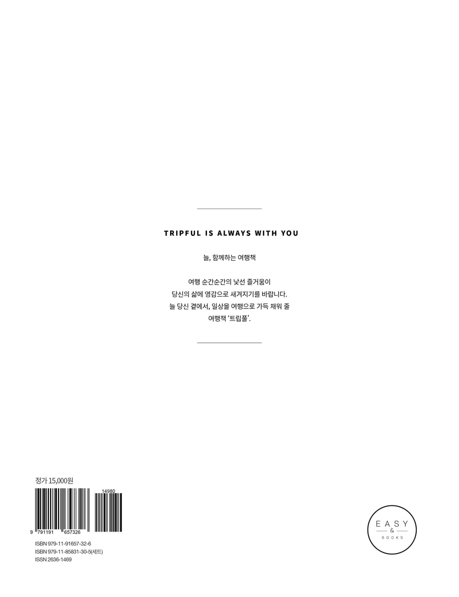 단순히 보고, 먹고, 자는 소개가 주인 기존 가이드북의 형식을 벗었습니다. ‘무엇을’ 보다는, ‘어떻게’와 ‘왜’에 집중했습니다. 실제 여행자들의 시선으로 바라보고, 그곳의 매력을 다양하게 해석하고 느끼는 현재의 여행 트렌드와 발맞추었습니다. 다릅니다. 단순한 명소 방문이 아닌 해당 스폿을 즐기는 방법과 그 속에 숨겨진 이야기를, 줄 서서 먹을 만큼 유명한 식당에서 ‘왜’ 먹어야 하는지를, 단순 유행 아이템 쇼핑이 아닌 현지인들의 라이프 스타일을 엿볼 수 있는 그들만의 숍을 함께 소개합니다. 사진과 텍스트의 지루하고 반복적인 나열보다는 각각의 매력과 장점을 드러낼 수 있는 텍스트 편집과 디자인 레이아웃, 이미지 등 「트립풀」만의 큐레이션을 통해 여행자와 여행지에 더욱 집중, 여행의 깊이를 한껏 더합니다. ◇ 현지인처럼 가볍게, 트렌디한 여행책 「트립풀」은 가볍고 얇으면서도 감각적인 디자인의 여행책입니다. 130 페이지 내외의 콤팩트한 분량은 어디든 가볍게 들고 여행할 수 있게 합니다. 표지는 여행지의 일상에서 포착할 수 있는 감각적인 장면을 담아 소장하고 싶은 욕구를 더합니다. 낯선 곳에서 이방인처럼 여행하는 것이 아닌, 현지인처럼, 현지인의 삶을 체험하고 돌아오는 여행을 즐길 수 있도록 「트립풀」이 안내합니다. 가장 후쿠오카적인 취향! 「트립풀 후쿠오카」 2025년 최신 개정판이 출간되었습니다. 하루 평균 3만 보를 걸으며 후쿠오카 곳곳을 돌아다녔습니다. 잠시 의자에 앉아 다리를 마사지하던 날이 생각납니다. 덥지도 춥지도 않은 평온한 오후, 빠르지도 느리지도 않게 제 갈 길을 가는 후쿠오카 사람들을 보면서 평화롭다는 생각이 들었습니다. 후쿠오카가 오랫동안 여행객에게 사랑받는 이유도 바로 이 평화로움 덕분이 아닐까요? 혼자 여행해도 낯설지 않고 언제 찾아와도 오랜 친구를 만난 듯 여행자를 반겨주는 후쿠오카. 익숙한 여행지이지만, 항상 여행하는 기분을 주는 후쿠오카에서 택시 기사님, 여행지에서 만난 사람들, 후쿠오카를 찾은 일본 여행객들에게 여러 명소와 맛집을 추천받으며 발걸음을 옮겼습니다. 덕분에 곳곳을 누비며 사람들이 비밀처럼 꽁꽁 숨겨뒀던 후쿠오카 명소, 맛집, 휴양지, 쇼핑 장소 등을 책 한 권에 담아낼 수 있었습니다. 트립풀 첫 번째 책이었던 후쿠오카를 다시 새롭게 만들면서 더 깊이 들여다보고 새로운 시선으로 전하고자 했습니다. 공들여 만든 「트립풀 후쿠오카」에서 여러분만의 후쿠오카를 발견하시길 바랍니다. |