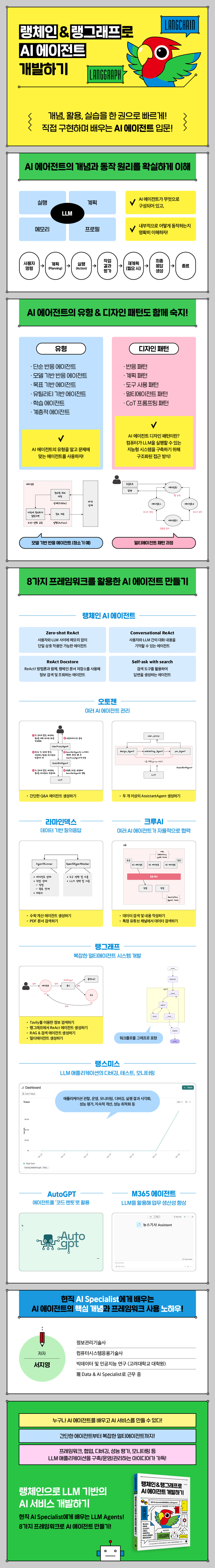1장 LLM의 등장과 AI 생태계의 변화 __1.1 LLM의 탄생 __1.2 LLM의 발전: 멀티모달 LLM __1.3 LLM의 발전: 모델 규모의 확장 __1.4 LLM의 발전: 오픈소스와 커뮤니티 역할의 확대 2장 LLM의 진화와 AI 에이전트 등장 __2.1 o1의 등장 ____2.1.1 GPT-4o와 o1 비교 ____2.1.2 시나리오로 알아보는 o1 __2.2 AI 에이전트의 등장 2부 | AI 에이전트 이해하기 3장 AI 에이전트의 개념 __3.1 AI 에이전트란? __3.2 LLM, RAG, AI 에이전트 비교 4장 AI 에이전트 구성 및 동작 방식 __4.1 AI 에이전트 구성 요소 __4.2 AI 에이전트 동작 방식 __4.3 에이전트 유형 5장 AI 에이전트 디자인 패턴 __5.1 반응 패턴 __5.2 계획 패턴 __5.3 도구 사용 패턴 __5.4 멀티에이전트 패턴 __5.5 CoT 프롬프팅 패턴 6장 AI 에이전트 프레임워크 __6.1 오토젠 __6.2 랭체인 __6.3 랭그래프 __6.4 크루AI __6.5 라마인덱스 __6.6 AutoGPT 3부 | AI 에이전트 활용하기 7장 AI 에이전트를 사용하기 위한 준비 __7.1 코랩 환경 구성 ____7.1.1 코랩 접속하기 ____7.1.2 코랩 사용하기 ____7.1.3 구글 드라이브 접속하기 __7.2 API 키 발급 ____7.2.1 OpenAI API 키 생성 ____7.2.2 Tavily API 키 생성 ____7.2.3 랭스미스 API 키 생성 ____7.2.4 Serper API 키 생성 8장 AI 에이전트 구현하기 __8.1 랭체인 에이전트 ____8.1.1 랭체인 AI 에이전트 동작 방식 ____8.1.2 랭체인으로 에이전트 구현하기 __8.2 AutoGPT __8.3 오토젠 ____8.3.1 오토젠 개념 이해하기 ____8.3.2 오토젠으로 에이전트 구현하기 __8.4 라마인덱스 ____8.4.1 라마인덱스 개념 이해하기 ____8.4.2 라마인덱스로 에이전트 구현하기 __8.5 크루AI ____8.5.1 크루AI 개념 이해하기 ____8.5.2 크루AI로 에이전트 생성하기 __8.6 랭그래프 활용하기 ____8.6.1 랭그래프 개념 이해하기 ____8.6.2 랭그래프로 에이전트 생성하기 9장 랭스미스를 이용한 에이전트 디버깅 및 평가 __9.1 랭스미스란? __9.2 랭스미스 활용하기 ____9.2.1 디버깅하기 ____9.2.2 랭그래프와 디버깅 연동하기 ____9.2.3 성능 평가하기 ____9.2.4 모니터링하기 4부 | M365 코파일럿 에이전트 10장 M365 코파일럿과 M365 코파일럿 에이전트 __10.1 M365 코파일럿 ____10.1.1 M365 코파일럿의 기능 ____10.1.2 코파일럿의 동작 방식 __10.2 M365 코파일럿 에이전트 11장 M365 코파일럿 에이전트와 AI 에이전트 비교 __11.1 M365 코파일럿 에이전트의 한계 __11.2 M365 코파일럿 에이전트 vs. AI 에이전트 |