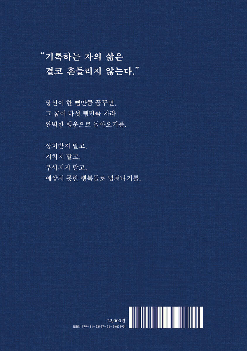 기록은 흘러간 삶을 다시 한 번 살아보게 하는 힘이 있다. 기쁜 순간을 적어두면 그날의 희열과 행복을 느낄 수 있고, 아팠던 기억 속에서도 성장의 조각을 발견할 수 있다. 되돌아가고 싶지 않은 힘든 순간을 훗날 다시 읽으면, 그때를 이겨낸 지금의 나를 마주하며 용기를 얻는다. 외면했던 감정을 글로 털어놓는 것만으로도 치유가 되고, 다시 걸어갈 힘이 생긴다. 말로 꺼내지 못했던 마음도 글에서는 자유로워질 수 있다.