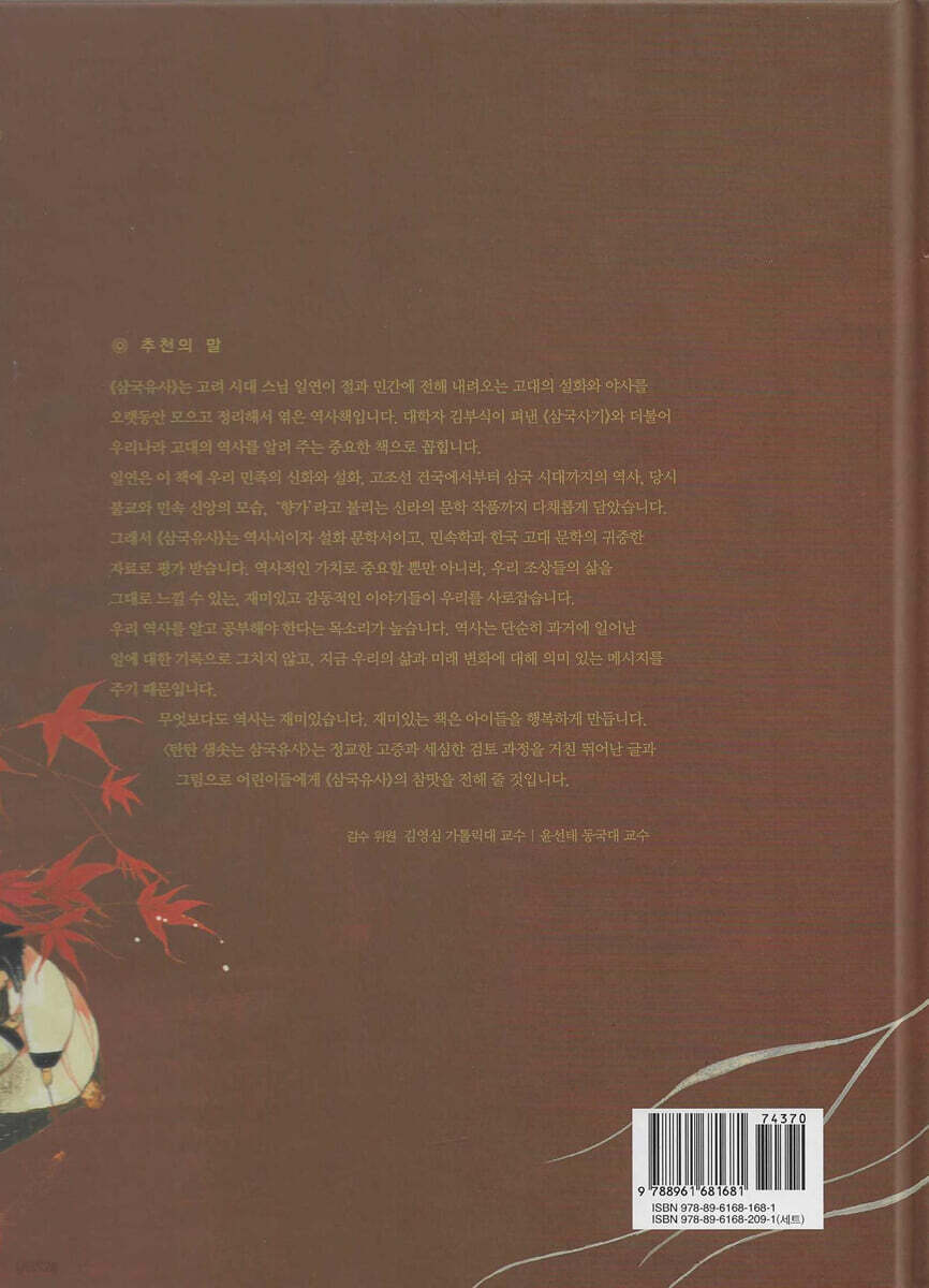 무엇보다도 역사는 재미있습니다. 재미있는 책은 아이들을 행복하게 만듭니다. 「탄탄 샘솟는 삼국유사」는 정교한 고증과 세심한 검토 과정을 거친 뛰어난 글과 그림으로 어린이들에게 「삼국유사」의 참맛을 전해 줄 것입니다.