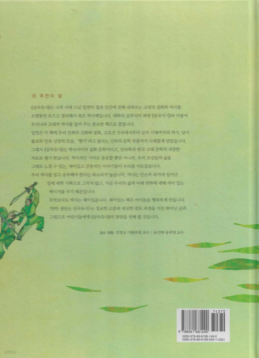 무엇보다도 역사는 재미있습니다. 재미있는 책은 아이들을 행복하게 만듭니다. 「탄탄 샘솟는 삼국유사」는 정교한 고증과 세심한 검토 과정을 거친 뛰어난 글과 그림으로 어린이들에게 「삼국유사」의 참맛을 전해 줄 것입니다.