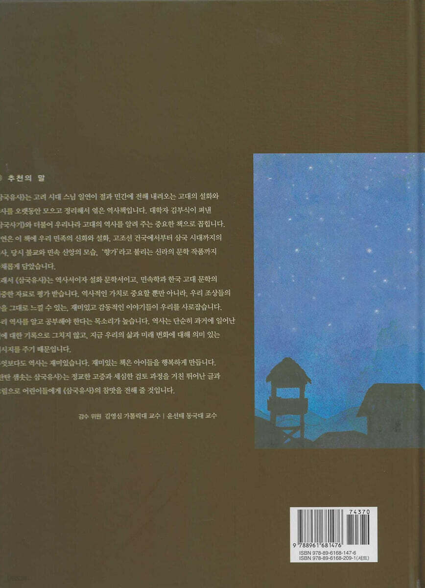 무엇보다도 역사는 재미있습니다. 재미있는 책은 아이들을 행복하게 만듭니다. 「탄탄 샘솟는 삼국유사」는 정교한 고증과 세심한 검토 과정을 거친 뛰어난 글과 그림으로 어린이들에게 「삼국유사」의 참맛을 전해 줄 것입니다.