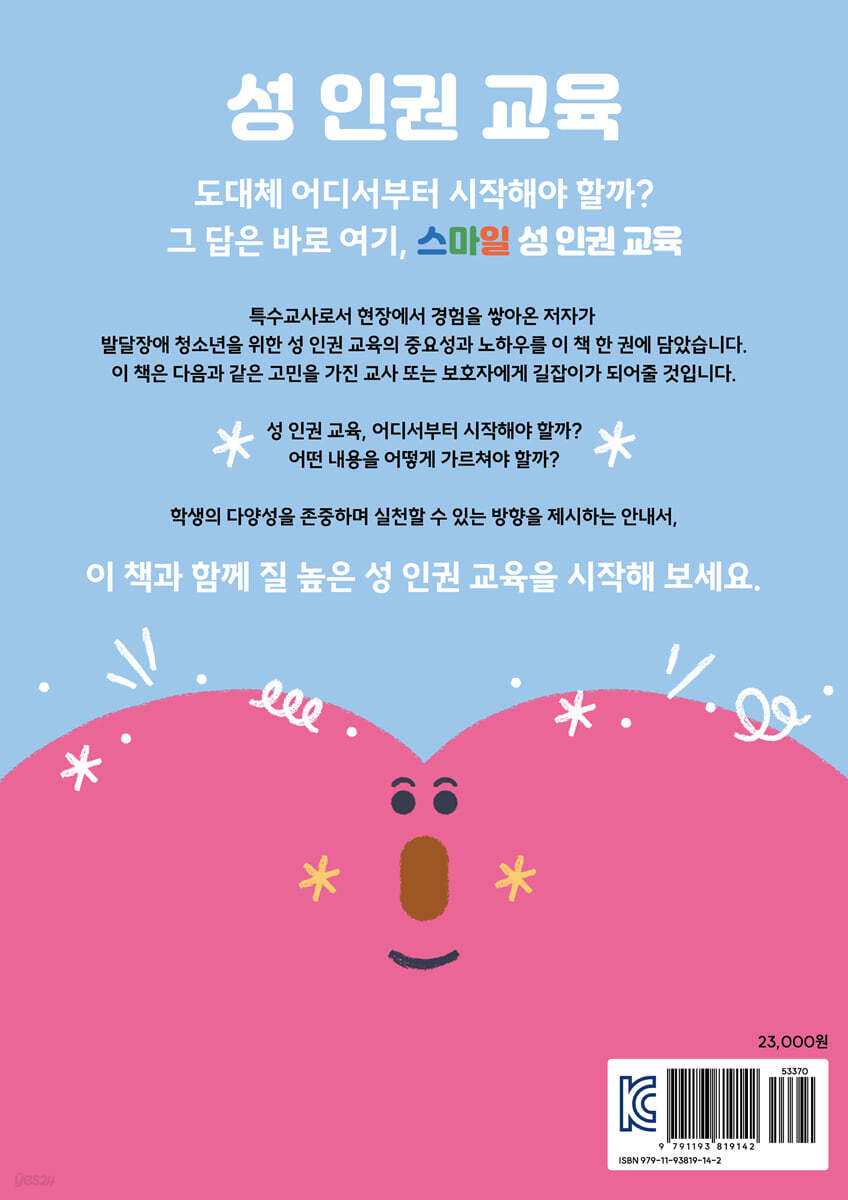 특수교육과 마찬가지로, 성 인권 교육 또한 개별화되어야 한다는 믿음으로 『스마일 스스로 마음을 가꾸는 일상 속 성 인권 교육 (청소년편)』을 집필하게 되었으며, 같은 고민을 가진 특수교사들에게 실제적인 도움을 주고자 한다. 이 책은 교실에서 ‘지금 당장’ 시작할 수 있는 성 인권 교육의 방향을 제시하는 따뜻하고 실용적인 길잡이가 되어 줄 것이다.