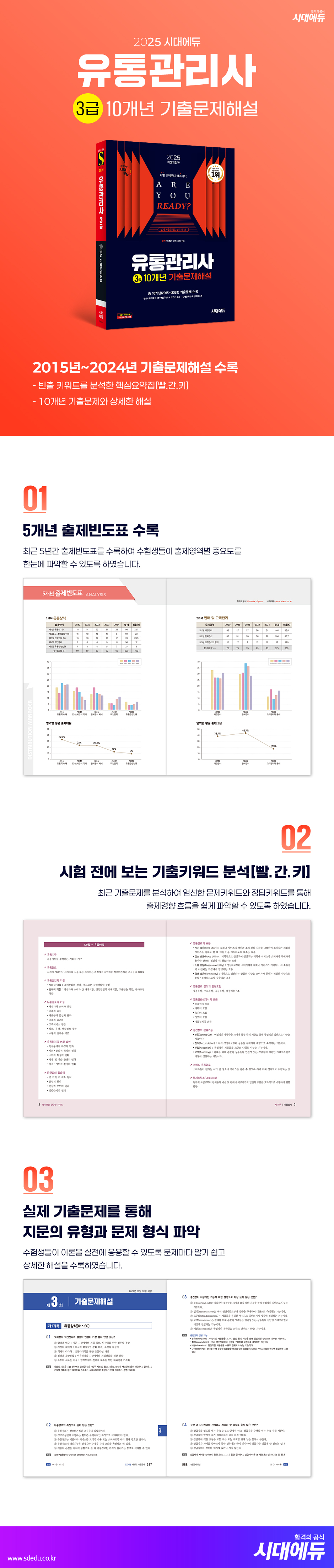 2025 도서는 지난 한 해 독자님들이 전해주신 소중한 의견과 질책을 하나하나 새겨듣고 빠짐없이 반영하고자 힘썼습니다. 20년간 유통관리사를 준비하시는 독자님들 곁을 시대고시가 함께하였듯이 앞으로도 독자님들의 말 한 마디 한 마디에 귀 기울여 독자님들을 위한 도서를 펴내는 데 힘쓰겠습니다. 진심으로 독자님들의 합격을 기원하겠습니다.
