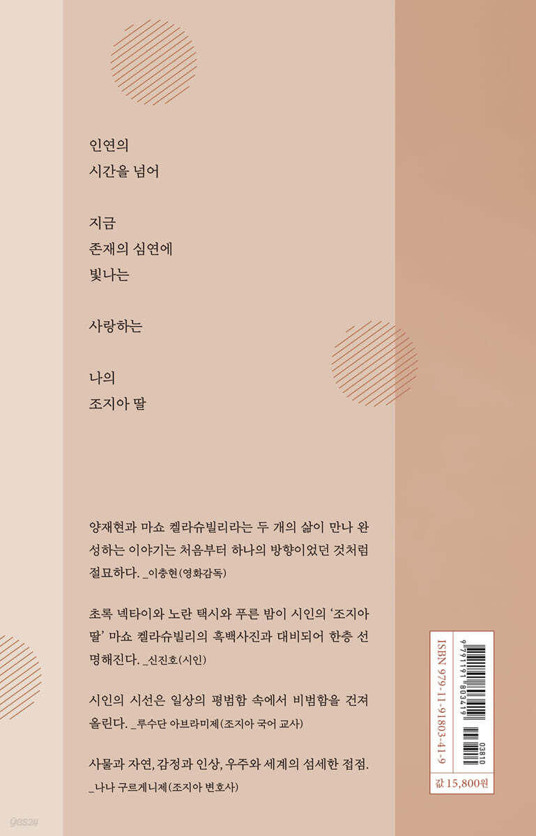 섬세하고 아름다운 세계를 만났다. 다양한 감각이 읽는 이의 마음을 따뜻하게 감싸고, 시적인 이미지들은 깊은 감동을 남긴다. 시인의 시선은 일상의 평범함 속에서 비범함을 건져 올린다. - 루수단 아브라미제 (조지아 국어 교사)