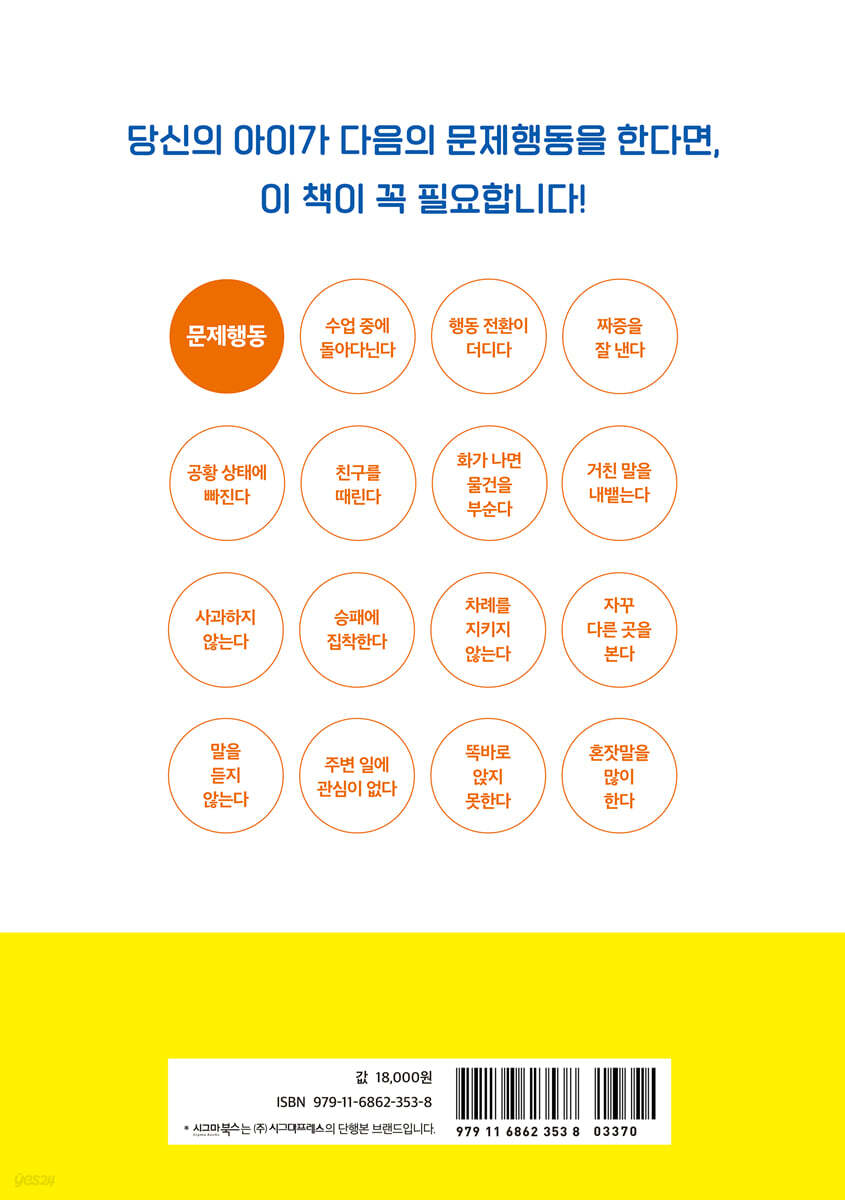제1장 발달장애 아이가 보고 느끼는 세상 001 왜 말을 잘 이해하지 못할까? →작업기억 용량이 작기 때문입니다 002 문제행동을 보이는 이유 ① →미학습 상태이기 때문입니다 003 문제행동을 보이는 이유 ② →잘못된 정보를 학습했기 때문입니다 004 문제행동을 보이는 이유 ③ →감정을 표현하지 못하기 때문입니다 005 왜 집단에 적응하지 못할까? →아이에게는 지옥이기 때문입니다 006 문제는 머리만이 아니다 →신체적 특성에도 관심이 필요합니다 007 버릇없는 아이라는 생각은 오해 →감각이 예민한 아이일지도 모릅니다 008 문제는 예민한 증상만이 아니다 →상반된 증상이 함께 나타날 수도 있습니다 009 감각과민 증상의 실태 ① →너무 잘 들려서 괴로운, 청각과민 010 감각과민 증상의 실태 ② →뇌를 지치게 하는, 시각과민 011 감각과민 증상의 실태 ③ →피부 자극에 예민한, 촉각과민 012 감각과민 증상의 실태 ④ →오해받기 쉬운, 미각과민 013 감각과민 증상의 실태 ⑤ →특정 냄새에 예민한, 후각과민 제2장 눈여겨봐야 할 부분과 지켜야 할 원칙 014 특히 신경 써야 할 시기 →5세, 9세, 13~14세 아이는 특별한 관심이 필요합니다 015 대응의 기본 원칙 →베이직 5를 기억하세요 016 아이를 도울 방법을 찾을 때는 →위험 요인과 보호 요인에 주목하세요 017 즉시 아이를 돕고 싶다면 ① →항상 표정과 미간을 살펴보세요 018 즉시 아이를 돕고 싶다면 ② →눈빛과 호흡을 관찰하세요 019 문제행동을 일으켰을 때 ① →반드시 측정 데이터를 확보해야 합니다 020 문제행동을 일으켰을 때 ② →수집한 데이터를 분석해보세요 021 엄하게 주의를 주기보다는 →아이가 스스로 깨닫게 해주세요 022 아이와 대화할 때 지켜야 할 원칙 ① →반드시 CCQ를 유지해주세요 023 아이와 대화할 때 지켜야 할 원칙 ② →한 번에 한 가지만 말해주세요 024 아이와 대화할 때 지켜야 할 원칙 ③ →숨은 지시와 마지막 말에 주의해주세요 025 아이의 기분을 파악하는 방법 →아이와 하이파이브를 해보세요 제3장 실제로 효과가 검증된 칭찬법 · 교육법 026 꼭 알아둬야 할 기본 규칙 ① →칭찬할 때 지켜야 할 다섯 가지 포인트 027 꼭 알아둬야 할 기본 규칙 ② →가르침에는 인내가 필요합니다 028 꼭 알아둬야 할 기본 규칙 ③ →아이가 눈을 맞춰오면 반드시 칭찬해주세요 029 꼭 알아둬야 할 기본 규칙 ④ →우연히 일어난 일은 칭찬하지 마세요 030 하고 싶은 말을 확실하게 전달하려면 →힘주어 또렷하게 말해보세요 031 칭찬 포인트를 찾으려면 →전후를 잘 비교해보세요 032 더 구체적으로 칭찬하려면 →전후 횟수를 비교해보세요 033 가르쳐주고 싶은 기술이 있다 →칭찬할 때 하나 더 추가해보세요 034 신뢰 관계를 형성하고 싶다면 →“믿는다!”라는 말로 칭찬해주세요 035 효과가 탁월한 칭찬법 ① →칭찬받는 법부터 가르쳐주세요 036 효과가 탁월한 칭찬법 ② →아이의 행동에 점수를 매겨주세요 037 효과가 탁월한 칭찬법 ③ →시각과 촉각을 활용해보세요 038 효과를 지속시키는 아이디어 ① →공감을 부르는 표현을 사용해보세요 039 효과를 지속시키는 아이디어 ② →칭찬 사이에도 적당한 간격이 필요합니다 제4장 집착하는 아이와 마주하는 법 040 대응 규칙 ① →가장 먼저 아이의 마음에 공감해주세요 041 대응 규칙 ② →억지로 말리지 말고 기다려 주세요 042 집착을 멈추게 하려면 →호흡을 관찰하며 기회를 노려야 합니다 043 다음 행동을 유도하려면 →아이와 함께 ‘끝’을 정해보세요 044 행동전환을 유도하는 아이디어 ① →알람 기능이 있는 손목시계를 선물해보세요 045 행동전환을 유도하는 아이디어 ② →전환 포인트를 가르쳐주세요 046 주변에 피해를 주는 행동은 →OK와 NG의 기준을 정해주세요 047 집착행동을 예방하려면 →카드를 활용해서 아이를 도와주세요 제5장 눈에 띄는 행동을 예방하고 해결하는 방법 048 아이가 시끄럽게 떠들 때는 →“쉬-잇” 한 번으로 해결할 수 있어요 049 방이나 책상이 어질러져 있을 때는 →어른이 함께 정리해주세요 050 혼자 중얼거릴 때가 많다면 →내적 언어 발달 훈련이 필요합니다 051 아이가 심하게 불안해한다면 →함께 해결책을 고민해주세요 052 불안한 마음을 말하지 못하는 아이에게는 →다가가서 먼저 말을 건네주세요 053 차례를 지키지 않는 아이에게는 ① →차례를 지켜야 하는 이유부터 설명해주세요 054 차례를 지키지 않는 아이에게는 ② →기다리는 법을 그림으로 가르쳐주세요 055 무조건 이겨야만 성에 차는 아이에게는 →게임을 통해서 지는 경험을 쌓아주세요 056 분위기를 파악하지 못하는 아이는 →사회적 참조 과정을 거쳐 갈 수 있게 도와주세요 057 반항심이 강한 아이에게는 ① →객관화 화법을 활용해보세요 058 반항심이 강한 아이에게는 ② →차분하게 질문을 던져보세요 059 험한 말을 내뱉는 아이는 →칭찬으로 의식의 흐름을 바꿔주세요 060 공부하기 싫다고 떼쓰는 아이에게는 →120%의 법칙을 활용해보세요 061 어른에게 해달라고 떼쓰는 아이에게는 →스스로 할 행동을 선택하게 하세요 제6장 산만하고 부산한 우리 아이를 위해 062 아이가 가만히 있지 못하는 이유 ① →가