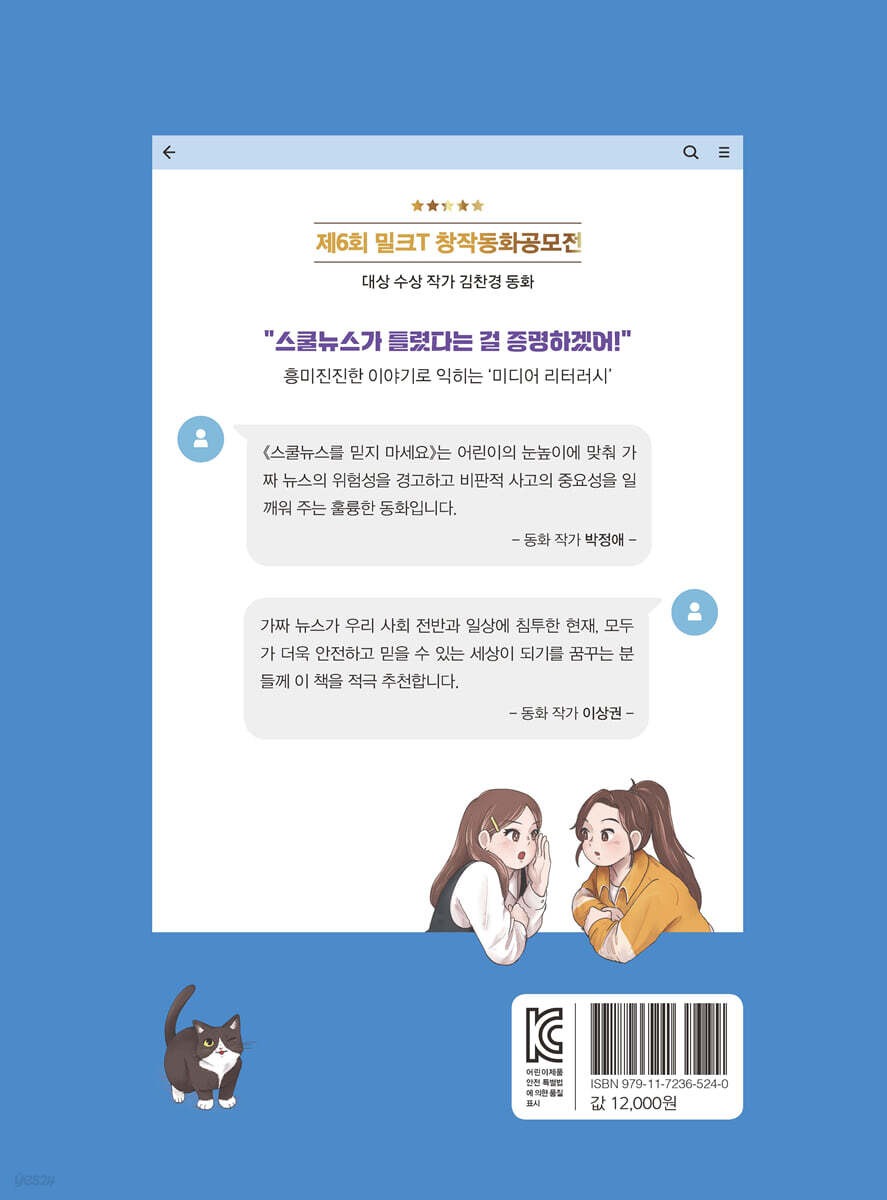 『스쿨 뉴스를 믿지 마세요』 는 아이들 스스로 문제를 해결하는 흥미진진한 스토리를 통해 어린이 독자의 몰입도를 높이는 동시에, 미디어 리터러시 교육의 필요성을 자연스럽게 전달하고 있습니다. - 박정애 (교수, 동화 작가)
