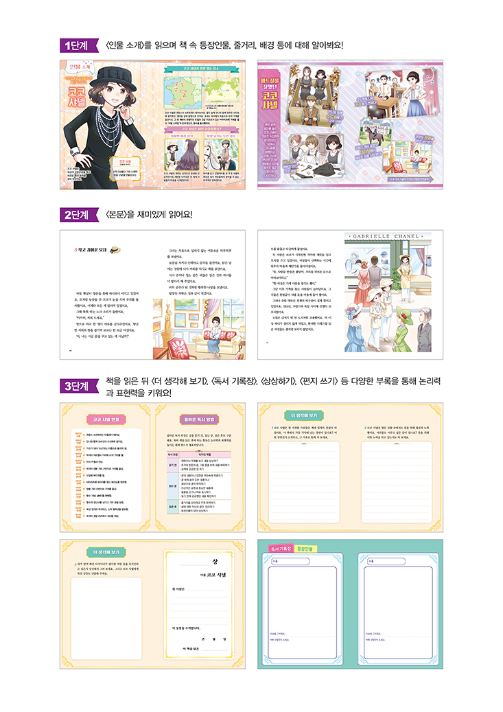 만화 영화 같이 컬러풀하고 예쁜 일러스트 삽화 이 시리즈는 세계 위인의 일생을 쉽게 재구성하여 어린이도 술술 읽을 수 있게 하였습니다. 역사 속에서 이름을 빛낸 세계 위인들의 발자취를 재미있는 이야기 형식으로 풀어냈기 때문에 아이들이 부담 없이 읽을 수 있고, 만화 영화 같은 예쁜 일러스트가 들어 있어 책 읽기에 대한 거부감을 줄이는 데 도움이 됩니다. 또한, 위인의 숨겨진 이야기를 ‘신문’으로 만들어 특별한 에피소드나, 위인이 실제 활동했던 장소의 사진을 실어 인물을 보다 깊이 이해할 수 있도록 만들었습니다. 이를 통해 아이들이 역사에 대한 관심과 흥미를 높이고, 삶의 교훈과 지혜를 얻을 수 있습니다. 책 읽기를 돕는 체계적인 3단계 구성! 이 시리즈는 책을 읽기 전에 그림으로 된 「인물 소개」 코너를 수록해 이야기 속 주요 인물 및 사건과 배경 등에 대해 알려 주어 책에 대한 이해를 도와줍니다. 또 본문 뒤에 「올바른 독서 방법」을 수록해 책을 읽고 정리하는 방법을 알려 주고, 「더 생각해 보기」, 「편지 쓰기」, 「독서 기록장」 등의 다양한 활동을 통해 독후 활동을 재미있게 할 수 있도록 돕습니다. 아이들은 자기 생각을 정리하며 논리력과 표현력을 키울 수 있습니다. 「책 읽기 3단계」 * 1단계: 「인물 소개」를 읽으며 책 속 주요 인물, 사건, 배경 등에 대해 알아봐요! * 2단계: 「본문」을 재미있게 읽어요! * 3단계: 책을 읽은 뒤 「더 생각해 보기」, 「편지 쓰기」, 「독서 기록장」 등 다양한 부록을 통해 논리력과 표현력을 키워요! |