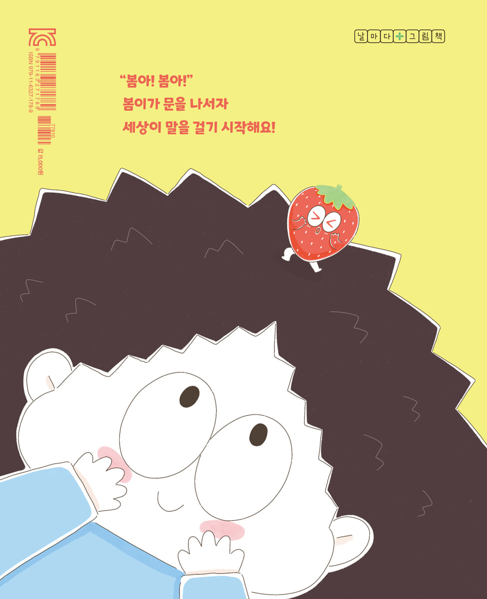 봄이가 유치원에 가요. 문을 나서자 누군가 봄이를 불러요. “봄아! 봄아!” 발그레 잘 익은 딸기예요. “나도 유치원에 가고 싶어!” 봄이는 신이 나서 함께 가자고 말해요. 그 뒤에 단추도, 그림책도, 젤리도, 개미도 봄이에게 말을 거네요. 오늘따라 유치원 가는 길이 즐거워요.