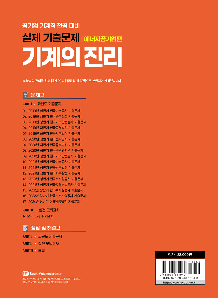 Part 01_ 과년도 기출문제 01 2019 상반기 한국가스공사 기출문제 02 2019 상반기 한국중부발전 기출문제 03 2019 상반기 한국가스안전공사 기출문제 04 2019 하반기 한국동서발전 기출문제 05 2019 하반기 한국서부발전 기출문제 06 2020 상반기 한국전력공사 기출문제 07 2020 하반기 한국중부발전 기출문제 08 2020 하반기 한국수력원자력 기출문제 09 2020 상반기 한국가스안전공사 기출문제 10 2021 상반기 한국가스공사 기출문제 11 2021 상반기 한국남동발전 기출문제 12 2021 상반기 한국서부발전 기출문제 13 2021 상반기 한국수자원공사 기출문제 14 2021 상반기 한국지역난방공사 기출문제 15 2022 상반기 한국수자원공사 기출문제 16 2022 하반기 한국가스기술공사 기출문제 17 2024 상반기 한국남동발전 기출문제 Part 02_ 실전 모의고사 01 제1회 실전 모의고사 02 제2회 실전 모의고사 03 제3회 실전 모의고사 04 제4회 실전 모의고사 05 제5회 실전 모의고사 06 제6회 실전 모의고사 07 제7회 실전 모의고사 08 제8회 실전 모의고사 09 제9회 실전 모의고사 10 제10회 실전 모의고사 11 제11회 실전 모의고사 12 제12회 실전 모의고사 13 제13회 실전 모의고사 14 제14회 실전 모의고사 [정답 및 해설편] Part 01_ 과년도 기출문제 Part 02_ 실전 모의고사 Part 03_ 부록 01 꼭 알아야 할 필수 내용 02 3역학 공식 모음집 |