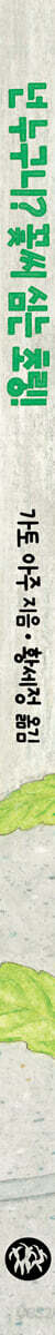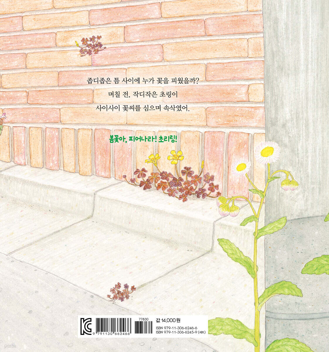 스마트폰보다 더 재밌는 세상을 보여 주는 책 작디작은 초링의 시선으로 보면 고양이는 집채만큼 크고, 운동화는 하늘을 나는 비행기만 하다. 이렇게 조그마한 생명체에 맞춰 그려진 세상은 마치 돋보기를 들이댄 것처럼 익숙한 풍경을 낯설고 새롭게 보여 준다. 길가의 들꽃, 맨홀 뚜껑 하나도 이야기 속에서는 커다란 배경이 되는 것이다. 이처럼 일상을 새롭게 비추는 시각은 아이의 상상력을 넓히고 관찰력까지 길러 준다. 초링들이 동네 구석구석을 누비며 겪는 일들은 계절마다 다채롭고, 장소에 따라 특별하다. 언제 어디서나 모험을 찾는 어린이에게 초링들은 마치 동네를 함께 뛰노는 친구처럼 느껴진다. 책의 마지막 장에는 초링들이 다녀간 동네 지도가 수록되어 있어, 이야기를 다시 떠올리며 공간 감각까지 함께 키워 볼 수 있다. 스마트폰에 갇힌 요즘 아이들에게, 〈초링 시리즈〉는 더 크고 생생한 세상을 만나게 해 줄 소중한 기회가 될 것이다. 일상을 풍성하게 만드는 어휘, 관계를 아름답게 만드는 표현이 가득한 이야기 모든 사람은 어린 시절에 쓰는 말을 씨앗 삼아, 세상을 이해하고 자신을 표현하는 수단을 만들어 나간다. 그만큼 어린이가 듣고 읽는 어휘와 표현은 사려 깊고 다정하며, 생활 속에서 유용하게 쓰일 수 있어야 한다. 〈초링 시리즈〉에는 계절마다 피는 다양한 들꽃, 날씨 변화, 동네의 풍경 등에 대한 구체적이고 정감 어린 표현이 가득하다. 들꽃의 이름을 부르고 공원과 길가의 풍경을 묘사하는 글을 읽으며, 아이는 일상에서 직접 사용할 수 있는 어휘들을 자연스럽게 익히게 된다. 또한 초링들은 언제나 함께 행동하며 서로를 돌본다. 함께 밥상을 차리고 씨앗을 모으며, 친구들과 축제를 즐기기도 한다. 이런 이야기 장면을 통해 아이들은 "도와줘.", "괜찮아?", "축하해.", “같이 하자.” 같은 사회적 언어, 즉 부탁하고 공감하고 협동하는 표현을 자연스럽게 배울 수 있다. 이처럼 이 책은 아이들이 언어의 뿌리를 만들고, 말로 관계 맺는 힘을 차곡차곡 키워 가는 데 든든한 밑거름이 되어 줄 것이다. 산책길에 배우고 추억을 쌓는, 온 가족의 생생한 독서 경험 〈초링 시리즈〉는 글과 그림을 넘어, 가족이 함께 살아 있는 독서를 실천할 수 있도록 돕는다. 책 속에는 실제 동네에서도 만날 수 있는 들꽃과 식물들이 등장하고, 계절에 따라 다채로운 자연의 모습이 섬세하게 담겨 있다. 책을 들고 산책을 나서면, 아이는 금세 “이 꽃, 책에서도 봤어!”, “초링이 지나간 길이랑 비슷해!” 하고 외칠 것이다. 그렇게 책과 현실이 연결되는 순간, 독서는 눈으로만 읽는 활동이 아니라 발로 걷고, 입으로 말하고, 마음으로 기억하는 일이 된다. 같은 들꽃이라도 계절마다 다른 모습으로 자라는 것을 관찰하며 자연에 대한 감수성도 함께 자라난다. 〈초링 시리즈〉를 통해 아이와 부모가 함께 책을 읽고, 함께 길을 걷고, 함께 이야기를 나누는 선물 같은 시간을 경험해 보자. 다정한 초링과 함께 걷는 길, 감각력과 표현력이 자라는 계절 작디작은 생명체, 초링은 꽃씨를 심으며 계절을 살아간다. 들꽃 사이를 오가고, 함께 먹을 꽃잎을 모으며, 서로를 챙기고 돌본다. 〈초링 시리즈〉는 초링들의 하루와 계절 속 이야기를 따라가며, 자연의 흐름과 생명의 순환을 아이의 시선에 맞춰 섬세하게 담아낸 그림책이다. 《넌 누구니? 꽃씨 심는 초링!》은 봄을 배경으로, 보도블록 사이와 돌담 틈에 꽃씨를 심으러 다니는 초링들의 하루를 그린 이야기다. 꽃씨를 품은 채 동네 곳곳을 누비던 초링들은 길에서 새 학기를 맞아 유치원에 가는 아이와 마주친다. 꽃이 피듯 새로운 시작을 맞이하는 아이의 일상이, 초링들의 봄날과 자연스럽게 겹쳐진다. 《어디 숨었니? 여름꽃 속 초링!》은 한여름 뜨거운 햇볕을 피해 그늘을 찾고, 갑작스러운 소나기에 꽈리 속으로 숨는 초링들의 이야기를 담고 있다. 여름꽃 사이를 바쁘게 오가는 초링들의 모습과 함께, 시원하게 물놀이를 즐기는 아이들의 여름날 풍경이 어우러진다. 《왜 모였니? 달맞이하는 초링!》은 보름달이 뜬 가을밤, 모두가 모여 풍성한 축제를 여는 이야기다. 초링들이 춤을 추며 음식을 나누는 장면은 우리 명절, 추석을 따뜻하게 떠올리게 한다. 《어디 가니? 눈꽃 언덕의 초링!》은 추운 겨울을 보내기 위해 초링들이 따뜻한 할머니 댁으로 떠나는 이야기다. 눈 내리는 여행길을 따라 도착한 집에는 친척과 친구들이 함께 모여 있다. 겨울방학 동안 친척 집을 찾아가는 아이들의 일상과 닮은 풍경이 포근하게 펼쳐진다. 《언제 만나? 봄에 돌아온 초링!》에서는 새로 태어난 아기를 축하하는 파티가 열린다. 모두가 함께 모여 축하하고, 기뻐하며, 선물을 나누고, 봄의 귀환을 반긴다. 계절이 다시 돌아오듯, 매년 찾아오는 생일의 설렘과 따뜻한 기억을 떠올리게 한다. 〈초링 시리즈〉는 자연의 변화와 어린이의 일상이 아름답게 어우러지는 이야기다. 계절을 온몸으로 느끼고, 가족과 함께 시간을 보내며 자라는 아이들에게, 이 책은 함께 걷는 다정한 친구이자 늘 곁을 지켜 주는 포근한 배경이 되어 줄 것이다. |