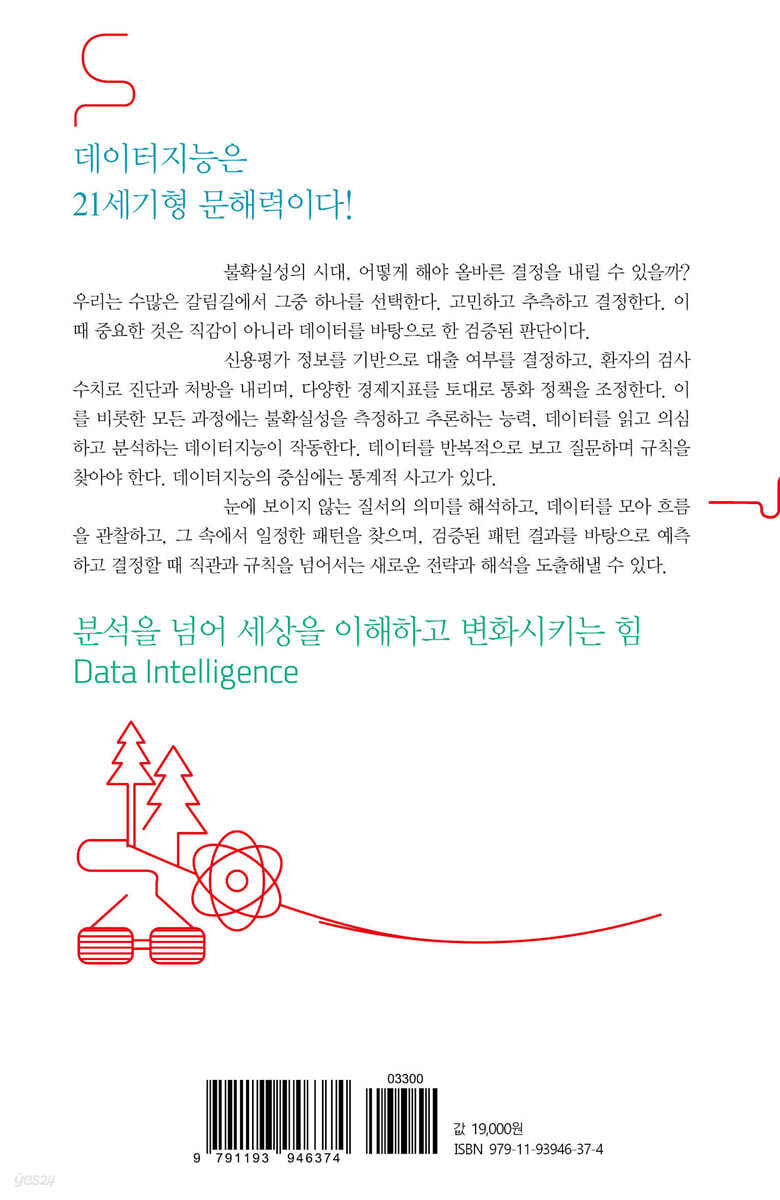 불확실성의 시대, 어떻게 해야 올바른 결정을 내릴 수 있을까? 우리는 수많은 갈림길에서 그중 하나를 선택한다. 고민하고 추측하고 결정한다. 이때 중요한 것은 직감이 아니라 데이터를 바탕으로 한 검증된 판단이다. 신용평가 정보를 기반으로 대출 여부를 결정하고, 환자의 검사 수치로 진단과 처방을 내리며, 다양한 경제지표를 토대로 통화 정책을 조정한다. 이를 비롯한 모든 과정에는 불확실성을 측정하고 추론하는 능력, 데이터를 읽고 의심하고 분석하는 데이터지능이 작동한다. 데이터를 반복적으로 보고 질문하며 규칙을 찾아야 한다. 데이터지능의 중심에는 통계적 사고가 있다. 눈에 보이지 않는 질서의 의미를 해석하고, 데이터를 모아 흐름을 관찰하고, 그 속에서 일정한 패턴을 찾으며, 검증된 패턴 결과를 바탕으로 예측하고 결정할 때 직관과 규칙을 넘어서는 새로운 전략과 해석을 도출해 낼 수 있다. 분석을 넘어 세상을 이해하고 변화시키는 힘 Data Intelligence 우리는 매일 수많은 선택의 갈림길에 선다. 아침에 어떤 커피를 마실지, 어떤 옷을 입을지 같은 사소한 결정부터 진로를 바꾸거나 인생의 반려자를 선택하는 중대한 결정까지. 이 모든 선택은 삶의 궤적을 형성하고, 미래를 조금씩 바꿔 나간다. 하지만 중요한 선택일수록 우리는 늘 불확실성의 벽과 마주하게 된다. “이게 과연 옳은 선택일까?”, “나중에 후회하지는 않을까?”, “다른 선택을 했다면 어땠을까?” 우리는 이 질문들 앞에서 고민하고, 망설이며, 결국 확실하지 않은 것을 추측하며 결정을 내린다. 이런 추측은 단순한 직감만으로 이루어지는 것이 아니다. 우리는 흔히 데이터를 바탕으로 판단한다. 우리는 눈에 보이지 않는 질서와 패턴을 발견하고, 그 의미를 해석하려는 본능을 지니고 있다. 이런 패턴 인식은 자연현상에만 국한되지 않는다. 인간의 삶, 건강, 사회현상에도 동일하게 적용된다. 예컨대 어떤 질병의 근원을 완전히 알지 못하더라도 우리는 누가 병에 걸리고 누가 그렇지 않은지를 비교해 차이를 측정하고, 그 속에서 원인을 유추해낸다. 오늘날의 인공지능 역시 데이터를 기반으로 패턴을 발견하고 예측하는 과정을 자동화한 것이다. 신경망 모형의 작동 방식은 통계적 사고와 닮아 있다. 우리는 데이터를 보고, 의심하고, 반복적으로 검토하면서 판단한다. 인공지능도 그런 과정을 반복 학습을 통해 수행한다. 결국 데이터지능은 인간과 기계가 공유하게 된 새로운 사고의 기반이기도 하다. 데이터를 읽고, 분석하고, 예측하는 힘 데이터지능이 세상을 변화시킨다 필자는 통계학을 배운 후 40여 년 동안 데이터를 통해 세상을 이해하고 예측해왔다. 1980년대 후반 한국은행에 들어간 뒤, 통계 패키지인 SAS를 활용해 국가통계를 전산화했고, 거시경제 예측모형을 개발해서 정책 분석에 활용했다. 또한 국민소득통계를 작성했고, 우리나라의 실정에 맞는 계절조정 방법을 개발해 다양한 통계에 적용했다. 이후 대학으로 자리를 옮겨서는 빅데이터와 인공지능 시대에 맞는 교육과 연구에 힘써 왔다. 통계학의 모든 영역을 경험하며 데이터와 함께 사고하고 성장해왔으며, 『데이터지능』은 그런 경험을 바탕으로 데이터를 통해 세상을 해석하는 방법, 다시 말해 데이터지능에 대한 생각들을 정리한 결과물이다. 이 책은 데이터를 읽고, 분석하고, 예측하는 힘, 즉 데이터지능을 키우는 방법을 다룬다. 그 중심에는 통계학과 통계가 있다. 통계는 세상을 데이터로 측정해서 요약한 결과다. 1장부터 6장까지는 추측통계학을 중심으로 확률, 표본, 추정, 검정, 인과관계, 모형 등 불확실성을 다루는 사고의 기본 원리를 설명한다. 7장과 8장은 통계와 기술통계학을 중심으로 데이터를 요약하고 시각화해서 정보를 정리하고, 세상을 설득하고 변화시키는 방법을 보여준다. 불확실성이 일상이 된 시대, 데이터를 나침반 삼아 분석하고, 이를 넘어 세상을 이해하고 변화시키는 힘 데이터지능이 절실하다. 이 책이 그 길에 동반자이자 길잡이가 되기를 기대한다. |