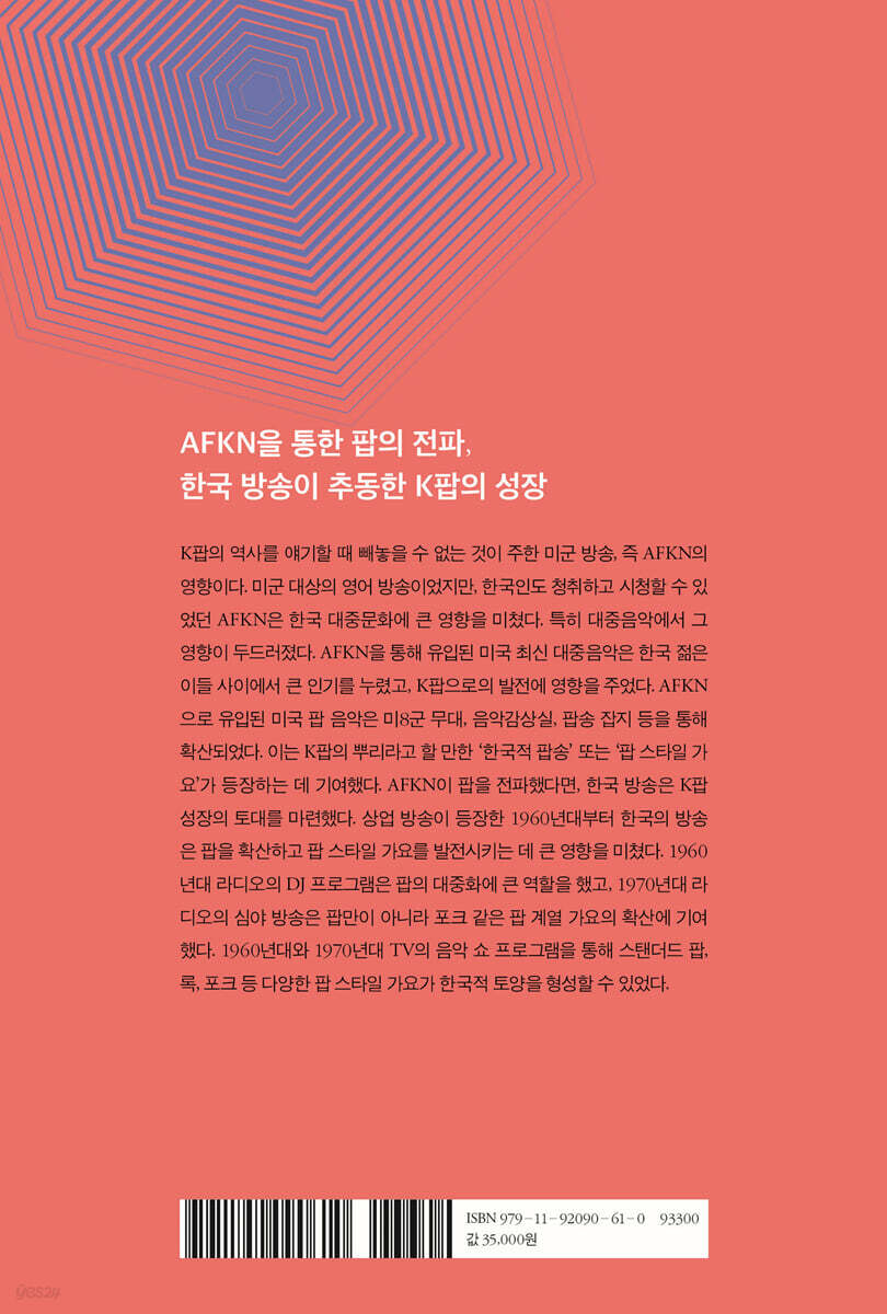 1장 WVTP의 등장과 영향 1. 최초의 미군 방송 WVTP 2. WVTP의 개국과 폐쇄 3. WVTP의 인력과 편성 4. WVTP의 수용과 영향 5. AFKN의 뿌리로서의 WVTP 2장 AFKN 라디오와 한국인 청취자 1. AFKN 라디오의 오랜 역사 2. AFKN 라디오 개국과 변화 3. AFKN 라디오 편성의 특성 4. AFKN 라디오의 수용과 영향 5. 팝송 청취와 영어 공부 수단으로서의 AFKN 라디오 3장 AFKN-TV의 특성과 문화적 영향 1. 미국 대중문화 유입의 파이프라인 AFKN-TV 2. AFKN-TV의 개국과 변화 과정 3. AFKN-TV 편성의 특성 4. AFKN-TV의 수용과 영향 5. 한류의 밑거름이 된 AFKN-TV Ⅱ부 팝송의 보급과 팝 정보의 확산 4장 미8군 쇼와 한국 대중음악 1. 미8군 쇼에 관한 관심 2. 해방 직후와 한국 전쟁 시기 미군 위안 무대 3. 한국 전쟁 이후 미8군 쇼의 성장 4. 연예 군납업체의 가수와 음악 5. 미8군 쇼의 변화와 쇠퇴 6. 미8군 쇼의 영향 5장 음악감상실과 ‘빽판’의 보급 1. 팝송 청취의 공간과 수단 2. 음악감상실의 등장과 이용 3. 전축과 팝송 음반의 보급 4. 팝 취향 형성과 팝 문화 기획 공간, 음악감상실 6장 팝송 출판과 팝송 잡지 1. 팝송에 관한 정보 욕구 2. 팝송 책의 등장 3. 팝 칼럼니스트와 팝송 잡지 4. 팝 마니아 등장과 팝 전문가의 활동 Ⅲ부 한국의 방송과 팝송 7장 라디오 팝송 DJ 프로그램의 등장과 변화 1. 팝송 프로그램의 편성과 DJ의 등장 2. 상업 방송의 등장과 DJ 프로그램의 편성 3. DJ 프로그램의 포맷과 음악 4. DJ 프로그램의 수용과 반응 5. DJ 프로그램과 팝 문화 형성 8장 라디오 심야 음악 프로그램의 등장과 변화 1. 심야 방송의 높은 인기와 팝송의 확산 2. 상업 방송의 경쟁과 심야 음악 프로그램 3. 심야 방송의 구성과 음악 4. 심야 방송에 대한 인기와 비판 5. 팝송에 대한 갈증을 해소해 준 심야 방송 9장 TV 음악 쇼와 미국의 영향 1. TV의 음악 쇼와 미국의 영향 2. TV 음악 쇼의 편성 경향 3. TV 음악 쇼의 포맷과 음악 4. TV 음악 쇼의 수용과 비판 5. TV 음악 쇼와 팝 계열 가요의 창작 팝 음악과 한국 방송의 만남, 번안과 창조 |