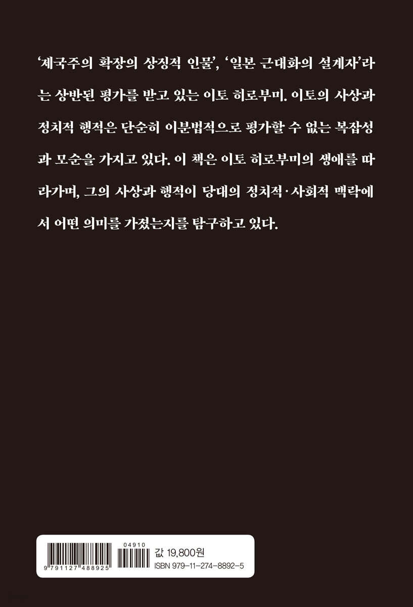 조망해보는 이토 히로부미 평전 일본 근대화의 주도적 인물 이토 히로부미. 메이지 헌법의 제정과 운용, 불평등조약 개정, 청일전쟁, 정당정치의 확립 등에서 중심적 역할을 수행한 그의 행적은 일본에서는 근대국가를 설계한 정치 지도자로 긍정적으로 평가되는 반면, 한국에서는 한일 병합과 제국주의 침탈의 중심에 있던 인물로 부정적 기억 속에 자리 잡고 있다. 을사늑약 체결과 한일 병합의 상징적 인물로 기억되며, 특히 안중근 의사가 하얼빈에서 그를 암살한 사건은 한국 독립운동사의 상징적 사건 중 하나로 평가된다 ‘제국주의 확장의 상징적 인물’, ‘일본 근대화의 설계자’라는 상반된 평가를 받고 있는 이토 히로부미. 그의 사상과 정치적 행적은 단순히 이분법적으로 평가할 수 없는 복잡성과 모순을 가지고 있다. 이 책은 이토 히로부미의 생애를 따라가며, 그의 사상과 행적이 당대의 정치적 · 사회적 맥락에서 어떤 의미를 가졌는지를 탐구해본다. 한일 양국이 서로 다른 역사적 경험을 공유하고 있음을 극명하게 보여주는 인물인 이토 히로부미의 궤적과 정치사상에 대해 깊게 들여다볼 수 있는 시간이 될 것이다. |