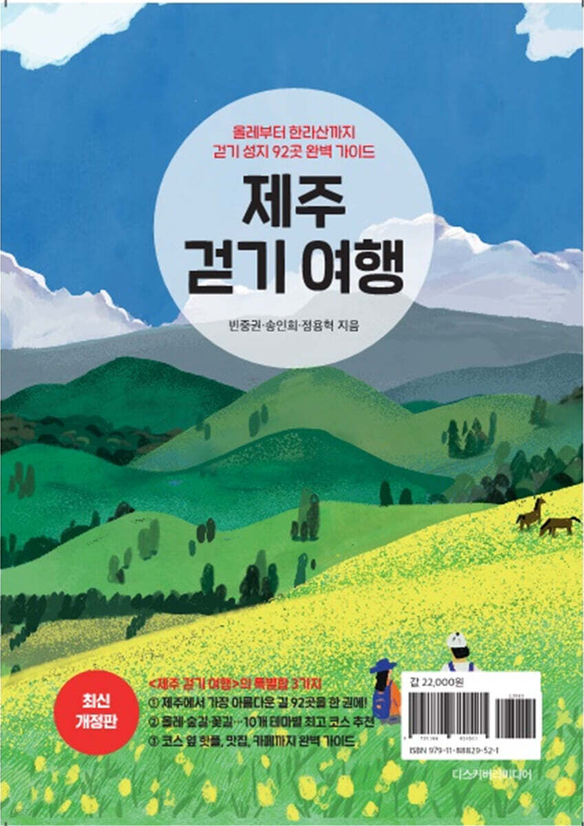 계절별·테마별 최고 코스 추천 제주의 길은 계절마다, 테마마다 다른 표정과 매력을 뽐내며 당신의 발길을 기다린다. 《제주 걷기 여행》 개정판은 걷기 코스의 다채로운 매력을 섬세하게 분류해, 걷는 이의 취향과 감성에 꼭 맞는 길을 제안한다. 올레길 베스트, 제주도 최고의 숲길, 혼자 걷기 좋은 길, 산정호수를 만나러 가는 길, 유채·벚꽃·청보리·수국·메밀·억새·동백 등 계절마다 꽃이 매혹적인 길, 그리고 탁 트인 전망을 감상할 수 있는 길까지, 각기 다른 주제와 계절에 맞춰 최고의 걷기 코스를 세 곳씩 엄선해 소개한다. 나에게 꼭 맞는 길을 걸으며, 오롯이 나에게 집중하는 여정, 그 특별한 순간으로 당신을 초대한다. 이동 동선을 고려한 효율적인 구성 올레, 동부권, 서부권, 한라산 권역으로 세분화 《제주 걷기 여행》 개정판은 제주의 길을 더욱 알차고 효율적으로 즐길 수 있도록, 92개 코스를 제주 올레, 동부권, 서부권, 한라산 권역으로 나누어 구성했다. 각 코스에는 그 길의 매력을 소개하는 글과 함께 시작점 주소, 코스 길이, 탐방 시간, 인기도, 탐방로 상태, 난이도, 접근성, 편의시설, 여행 포인트, 상세 경로 등 필수 정보를 빠짐없이 담았다. 이 정보를 보면 그 길을 한눈에 파악할 수 있을 뿐만 아니라, 여행자가 자신에게 맞는 길을 손쉽게 선택할 수 있다. 또한 시작점까지 이동하는 방법을 자동차, 버스, 콜택시로 나누어 자세하게 안내한다. 코스의 특징, 유의 사항, 준비물 등을 담은 실용적인 트레킹 팁도 더불어 제공한다. 어떤 길을 선택하든, 이 책과 함께라면 제주 걷기 여행이 더 특별해질 것이다. 걷기 여행, 그 이상의 즐거움을 위해! 핫스폿, 맛집, 카페 정보까지 한 권에 담다 《제주 걷기 여행》은 92개 트레킹 코스만 담은 책이 아니다. 시각과 미각의 즐거움까지 더한, 단 하나의 올인원 가이드북이다. 이 책은 걷기 코스뿐 아니라 제주의 핫스폿·맛집·카페 정보도 함께 소개한다. 단순히 모양새를 갖춘 것이 아니라, 제주에 사는 세 명의 여행 작가가 직접 발로 뛰며 핫플 117곳, 맛집 115곳, 카페 95곳을 정성껏 취재했다. 또한 권역별 지도에는 걷기 코스는 물론, 주변의 핫플·맛집·카페까지 함께 수록해 동선을 한눈에 파악하고 더 효율적인 여행을 할 수 있도록 돕는다. 《제주 걷기 여행》은 단순한 트레킹 안내서를 넘어, 명소·맛집·카페 투어까지 아우르는 유일한 가이드북이다. |