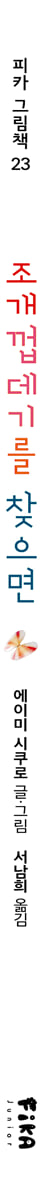 눈 앞에 펼쳐진 놀라운 상상의 세계 초록의 나뭇잎들이 바람에 흔들리고, 뜨거운 햇살이 내리쬐는 여름의 어느 날, 가족들 혹은 친구들과 모래사장을 거닐어 본 적 있나요? 새하얀 파도가 부서지는 해수욕장을 가 본 적은요? 누구나 한 번쯤은 선생님이나 부모님과 함께 모래사장에서 조개껍데기를 주워 본 적이 있을 거예요. 모양도, 색깔도 제각각인 조개껍데기를 주운 날, 여러분은 무엇을 했나요? 《조개껍데기를 찾으면》 속 소녀는 모래사장 곳곳에 널려 있는 조개껍데기로 재미난 상상을 시작합니다. 조개껍데기는 뜨거운 햇볕을 막아 줄 파라솔이 되고, 잠수함이 되어 알록달록한 바닷속을 탐험하게 해 주며, 발레리나가 입는 멋진 드레스가 되기도 합니다. 뗏목이 되어 바다 위를 넘나들고, 수화기가 되어 먼바다로부터 전해 온 메아리도 들을 수도 있습니다. 조개껍데기만 줍는다면 누구나 나만의 세상을 꾸며 볼 수 있습니다. 늘 우리 곁에 있지만, 걸음을 멈추고 들여다보기 전까지는 몰랐던 작은 조개껍데기가 우리를 아직 가 보지 않은 커다란 상상의 세계로 인도합니다. 평범한 하루를 즐겁게 물들이는 상상력의 힘 평범한 하루를 즐겁게 물들이는 소녀의 모험을 따라가 볼까요? 소녀는 조개로 자전거 바퀴를 만들어 구불구불한 길을 신나게 달리고, 가리비로 큰 파라솔을 만들어 시원한 그늘로 몸을 맡기고, 노을빛을 닮은 썬라이즈 조개로 연을 만들어 구름 위로 날리기도 합니다. 소녀처럼, 소녀의 친구들도 자신의 상상력으로 새로운 세상을 만들어 그곳에서 하루를 즐겁게 물들이며 모험을 즐깁니다. 어린이들은 호기심 넘치는 눈으로 어른들이 쉽게 지나치는 우리의 일상을 둘러보며 단 하나의 작은 것도 놓치지 않는 수집가입니다. 자연에서 얻은 소중한 선물로 마음을 나누며 위로를 주고, 마음속에 두려움 대신 용기를 가득 채우고 성큼성큼 걸어가는 모험가이기도 하지요. 어린이들은 다양한 색을 입고 변화하는 계절처럼 일상 어딘가에서 자라납니다. 바다로 여행을 떠나고, 높고 험한 산에 올라도 보고, 새로운 것에 도전하며 한 뼘 한 뼘 성장합니다. 어린이들의 찬란한 일상 속 모험을 만날 수 있습니다. 한여름과 해변의 모습을 옮겨 담은 콜라주 기법의 풍경화 글을 짓고 그림을 그린 에이미 시쿠로는 수채 물감과 잉크, 목탄 연필을 사용하여 새로운 이미지를 만드는 데 탁월한 작가입니다. 전작 《나뭇잎을 찾으면》에는 우리가 지금껏 성장하며 주위에서 늘 봐 온 나뭇잎을 주워 모아 그림은 물론, 이야기에 생명력을 불어넣었지요. 신간 《조개껍데기를 찾으면》 속에는 우리나라에서 쉽게 볼 법한 조개는 물론 다른 나라에서 볼 수 있는 조개껍데기를 주워 담았습니다. 다양한 곳에서 주워 온 조개껍데기를 하얀 도화지에 그대로 붙여 수채 물감과 잉크, 목탄 연필을 사용해 반짝이는 여름의 풍경을 그려 냈지요. 제한된 그림의 틀에서 벗어나 새로운 자유 공간을 창조하여 어린이들에게 다양한 미술 표현을 이해하게 하고, 물성의 체험을 통해 미적 감각을 길러 줍니다. 또한, 독특한 기법의 그림과 감성적이고, 여운 있는 글로 구성되어 예술적 감각과 문학적 감성을 키워 줍니다. 앞뒤 면지에는 우리나라뿐만 아니라 다른 나라에서 볼 수 있는 진귀한 조개껍데기가 소개되어 어린이들의 호기심을 자극합니다. 책의 맨 끝에는 조개껍데기로 놀 수 있는 다양한 방법이 수록되어 있습니다. 조개껍데기만 줍는다면 누구나 나만의 세상을 꾸며 볼 수 있습니다. 줄거리 모래사장에 있는 반짝이는 조개껍데기로 오늘 하루를 재미나게 만들 순 없을까요? 소녀는 색색의 가리비로 파라솔을 만들어 뜨거운 햇볕을 가리고, 점박이 조개로는 자전거 바퀴를 만들어 구불구불한 길을 신나게 달려요. 조개껍데기는 세상에서 가장 멋진 수영 모자가 되거나, 뗏목이 되어 더 넓은 바다로 나아가게 하고, 해적처럼 멋진 눈가리개가 되고, 망원경이 되어 신기한 장면을 볼 수 있게 하지요. 하늘 높이 슈우웅 날아가는 로켓, 바닷속으로 첨벙 뛰어들 수 있는 미끄럼틀, 알록달록 바닷속을 탐험할 수 있는 잠수함 등……. 조개껍데기는 그 어떤 것이라도 될 수 있어요. 자 이제, 조개껍데기로 또 무엇을 만들어 볼까요? ★ 교과 연계 ★ 국어 1-2 5. 생각을 키워요 국어 1-2 8. 느끼고 표현해요 국어 2-2 1. 장면을 상상하며 국어 2-2 7. 내 생각은 이래요 |