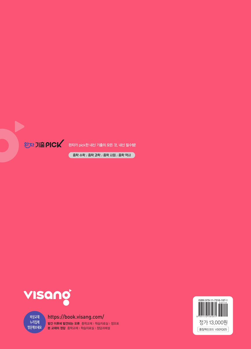 전국 학교의 최신 기출 문제를 모두 분석하여 실전 개념을 정리하였고 기출 문제를 주제별, 난이도별로 구성하였으며 고난도 문제까지 다루었다. 완자기출pick과 함께하면 내신 1등급! 문제 없다.