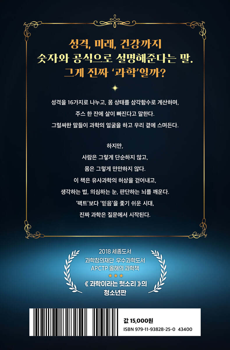 우리는 과학의 시대를 살고 있다. 인공지능이 기사를 작성하고, 유전자 치료가 희귀병을 극복하며, 우주 탐사가 일상이 되어가는 지금, 과학기술은 우리의 삶을 혁신적으로 변화시키고 있다. 하지만 과학이라는 이름 아래 수많은 유사과학과 근거 없는 믿음들이 여전히 우리의 삶을 뒤흔든다. 성격 테스트, 다이어트 비법, 건강 보조제, 기이한 민간요법, 음모론까지 과연 이 모든 것이 과학적으로 타당한 것일까?