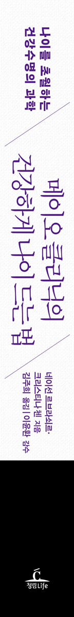말해, 인지 예비력이란 치매와 관련된 뇌 영역의 변화 등 병리적 변화가 일어났을 때 뇌가 잘 적응하는 능력을 의미한다. 전문가들은 개개인의 인지 예비력이 태어날 때부터 정해져 있는 건 아니라고 말한다. 인지 예비력은 일평생 발달하고 확장되며, 치매로 이어지는 일부 변화를 상쇄할 수 있다. 몇몇 활동은 인지 예비력을 개발하는 데 특히 도움이 된다. 새로운 기술이나 언어를 배우는 일처럼 뇌를 적당히 자극하는 활동은 인지 예비력을 키우는 데 가장 도움이 된다고 여겨진다. --- p.44 한 연구에서 과학자들은 참가자를 두 집단으로 나누었다. 한 집단은 유산소 운동을 하고, 다른 집단은 스트레칭과 균형 운동을 했다. 1년 후 과학자들은 유산소 운동을 한 집단이 다른 집단보다 새로운 기억을 만드는 뇌 영역인 해마가 더 크다는 것을 발견했다. 또 다른 연구에서 과학자들은 알츠하이머병을 유발하는 유전자를 지닌 사람이 매주 150분 이상 운동하면 알츠하이머병 발병이 수년 늦춰진다는 사실을 발견했다. 반대로 알츠하이머병 유발 유전자를 지닌 사람이 매주 150분 미만 운동하면 알츠하이머병 발병이 더 빨라졌다. 운동이 알츠하이머병의 위험도를 줄일 수 있는지는 분명하지 않지만, 언급된 연구 결과는 그러한 가능성을 시사한다. --- p.53 뼈의 골격 형성은 끝없이 집을 수리하는 작업과 유사하다. 뼈는 평생 뼈 재형성(bone remodeling)이라는 과정을 통해 지속적으로 제거되고 새로운 뼈로 대체된다. 뼈 표면의 작은 영역 수백만 개에서는 동시에 뼈재형성이 이루어진다. 뼈 재형성은 몇 가지 중요한 이유로 발생한다. 첫째는 마모에 따른 손상을 단순히 복구하는 것이다. 둘째는 무기질에 의존하는 신체 기능을 수행하기 위해 충분한 칼슘과 기타 무기질이 혈류를 타고 순환하도록 돕는 것이다. 마지막으로, 뼈 재형성은 신체 활동에 대한 반응으로 일어난다. 골격은 새로운 뼈를 형성해 더 무거운 무게와 강한 압력에 적응한다. --- p.132 수면 족은 충동적 행동, 그릇된 판단, 짜증을 유발할 수 있으며, 잠을 자지 않으면 의사 결정에 어려움을 겪게 된다. 흥미롭게도, 연구 결과에 따르면 낮에 깨어 있는 시간이 1시간 늘어날 때마다 건강한 식품을 선택할 가능성은 2%씩 감소한다. 또한 연구에 따르면 수면과 면역 체계는 양방향 관계를 맺는다. 감염에 따른 면역 체계의 활성화는 수면을 방해할 수 있지만, 한편으로 수면을 깊고 길게 유지시켜 신체가 회복에 필요한 에너지를 비축할 수 있도록 도울 수도 있다. 수면의 질이 낮으면 세포 스트레스가 발생해 신체의 염증 반응이 경미하지만 만성적으로 활성화될 수 있다. 수면은 신체가 회복 과정을 거치며 염증이 유발한 일상적 손상을 줄일 수 있도록 돕는다. 잠이 너무 부족하면 기존의 염증 손상이 복구되지 않는 동시에, 더 많은 세포 손상이 누적되는 이중고를 겪게 된다. --- p.220 과일, 채소, 단백질, 건강한 지방, 통곡물, 저지방 유제품을 포함하는 영양가 있는 식사를 하루 세 끼 먹도록 목표를 정한다. 특히 단백질을 충분히 섭취하자. 체중 유지를 위한 단백질의 일일 영양 권장량은 1킬로그램당 0.8그램이므로, 체중 68킬로그램 기준으로 환산하면 약 54그램이다. 심지어 근육을 늘리려면 이보다 더 많은 단백질을 섭취해야 하지만, 대다수 노인은 단백질을 이처럼 많이 섭취하지 않는다. 나이가 들수록 단백질을 일일 영양 권장량보다 많이 섭취하는 것이 더 좋다. 신체는 연령대가 높아지면 단백질 사용 효율이 떨어질 가능성이 있기 때문이다. 감염이나 질환으로 만성 염증이 생기면 단백질 필요량은 증가할 수 있다. 그리고 일부 약물은 단백질을 식단에서 충분한 양으로 섭취하지 않으면, 근육에서 단백질을 끌어내 근육량과 근력을 감소시킬 수 있다. --- p.280 우리는 자기 행동과 습관에 익숙해지는 경향이 있다. 그것이 건강에 이롭지 않더라도 익숙해진 행동과 습관은 삶에 질서와 안정성을 제공한다. 그래서 사람들 대부분은 익숙한 행동을 바꾸는 것을 꺼린다 식단 바꾸기가 어려울 수는 있지만 불가능한 것은 아니다. 대다수 사람들은 자신의 변화 능력을 과소평가할 뿐, 작은 행동의 변화는 건강에 막대한 변화를 불러일으킨다. 한 가지 평범한 사례를 들겠다. 많은 사람이 전유(일반 우유)를 탈지유로 대체해 마신다. 이들은 전유 섭취량을 점차 줄이거나 한 번에 과감히 바꾸었을 수 있다. 어쨌든 그들은 불가능하다고 생각했던 변화를 이루었다. 탈지유는 처음에 밍밍하게 느껴지지만, 그 맛에 익숙해지면 오히려 전유가 너무 진하고 걸쭉하게 느껴진다. 이는 작은 변화이지만, 하루에 우유 2잔을 마신다고 가정할 때 전유를 탈지유로 대체하는 간단한 방식으로 1년에 체중 약 6킬로그램을 감량할 수 있다. --- p.387 |