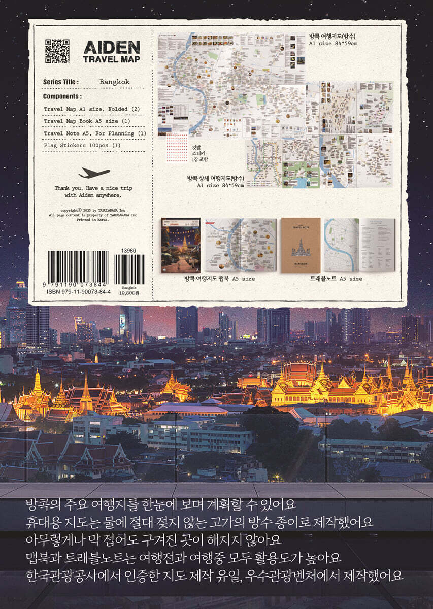 “에이든 방콕 여행지도 2026-2027”는 ‘방콕’ 지역을 여행하고자 하는 사람에게 동선과 여행정보를 한 눈에 볼 수 있도록 만들어주는 가장 효율적인 여행지도입니다. 기존 관광청에서 만든 무늬만 여행지도가 아닙니다. 자세한 정보도 담고 있어서 여행동선을 짜고 여행을 계획하기에 최적화 되어있습니다. 물론 싸진 않습니다. 그러나 한 장에 모든 정보가 담겨 있어 매우 편리하고 효용성이 월등하게 좋습니다. 그리고 이런 지도는 우리나라에 아니 전 세계에 “에이든 여행지도” 뿐이라고 단언합니다. 여행을 즐겁게 하기 위해서 시간을 절약하고 싶으시다면 이 지도를 꼭 선택해서 행복한 여행계획이 되시길 바랍니다.