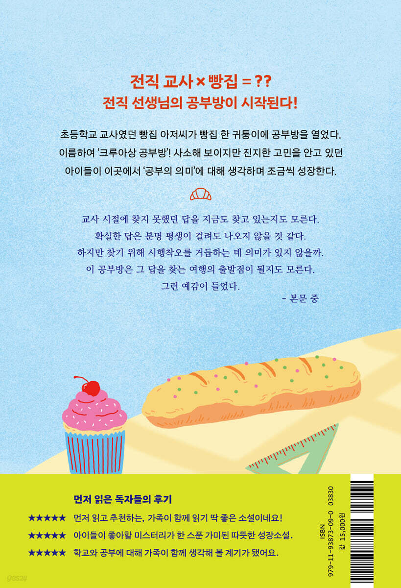 손님이 기다리지 않도록 계산은 무조건 막힘없이 재빠르게 해치워야 한다. 하지만 어느 정도 익숙해졌다 해도 나는 아직 신참이다. 아버지의 가르침을 떠올리며 계속해서 손님을 맞이한다. ---p.9 이름 같은 자세한 건 모르지만, 나는 그 여자아이를 알고 있다. 2주 정도 전부터 가게에 모습을 드러내기 시작한 여자아이다. 초등학교 4학년쯤 되어 보였는데, 전직의 경험 덕에 이 추측에는 내 나름대로 자신이 있었다. 짧은 머리에 긴 눈매가 어쩐지 고집 센 인상을 주는 아이로, 늘 가장 붐비는 아침 시간대에 찾아오곤 했다. 아침, 그것도 등교 전이라 하기에는 너무 이른 시간에 초등학생이 혼자서 가게를 찾아오는 경우는 드물다 보니 아무래도 눈에 띄는 존재였다. 좀 전의 소동과는 상관없이, 초등학생이라는 점과도 관계없이, 요즘 가장 마음이 쓰이는 ‘손님’이기도 했다. ---p.12-13 “숙제를 안 봐줘요. 시간이 없어서 안 된다면서. 그래서 늘 선생님한테 혼나요. 그건 무지 화가 나요.” 처음으로 아무런 갑옷도 두르지 않은, 있는 그대로의 이치조 마유리를 본 듯한 기분이었다. ---p.50-51 “숙제 말이야, 나라도 괜찮다면 봐줄까?” 정신을 차리고 보니 그런 말이 입에서 흘러나온 뒤였다. 아이는 그게 무슨 소리냐는 듯 의아한 표정을 지었다. “아저씨가 왜요?” “사실 오랫동안 초등학교 선생님으로 일했거든. 그것도 바로 얼마 전, 올해 3월까지 말이야.” ---p.60 “그거, 돈 들어요?” “아니, 무료로 할 생각이야. 아마 신지도 참가할 것 같아. 뭐라고 할까, 학원 같은 딱딱한 게 아니라 빵집 아저씨가 하는 작은 공부방이라고 생각하면 돼.” ---p.81 “전직 선생님, 숙제를 봐주지 않으면 역시 문제가 될까요? 마유리의 공부는 많이 뒤처졌나요? 시험에서 좋은 점수를 받지 못하면 안 되는 걸까요? 공부는 정말 그렇게 중요한가요?” ---p.134-135 하지만 아이에게 꿈을 가지라고 말하는 게 얼마나 갑갑한 일인지도 이해해요. 초등학생, 중학생, 고등학생 때 미래의 목표를 가지기란 쉽지 않으니까요. 저도 어렴풋이 인생의 목표가 보이기 시작한 건 20대가 거의 끝나갈 무렵이었고, 그것도 운이 좋은 편이었을지도 모릅니다. 그래도 좀 전에 이야기한 대로 ‘배우기 위한 공부’를 할 줄 모르면 세계는 더 이상 넓어지지 않고 정말로 하고 싶은 일을 평생 찾지 못할 수도 있습니다. 설령 찾더라도 실현할 힘이 없을 테고요. 아직 어릴 때 ‘배우는 힘’을 터득하는 건 반드시 행복해지기 위한, 인생을 풍요롭게 만들기 위한 원천이 될 거라고 믿어요.” ---p.137 그러니까 우선은 일은 생각하지 말고 더 넓은 의미에서 내가 뭘 좋아하는지, 뭘 할 때 행복하고 가슴이 설레는지, 자기 자신을 잘 들여다봤으면 좋겠어. 누군가 이미 정해 놓은 게 아니라 나만의 꿈과 목표를 찾기란 굉장히 어려운 데다 기술도 필요해. 언제 내 마음이 움직이는지 지금부터 스스로를 바라보는 습관을 들였으면 좋겠어. 그러면 머지않아 하고 싶은 일이 자꾸자꾸 솟아날 테니까.” ---p.161 멀리 돌아가는 게 나쁘다고 생각하지는 않는다. 그렇게 해서 얻을 수 있는 것도 있으니까. 하지만 어린 시절부터 자기 마음을 들여다보는 버릇을 들여 꿈과 목표를 쉽게 찾을 줄 아는 사람이 되면 인생은 분명 한결 즐거워질 것이다. ---p.162 학교에서 무엇을 가르치느냐가 아니라, 어떻게 해야 배우는 즐거움을 아이들에게 전할 수 있느냐. 그 점을 더 진지하게 생각하는 시대가 왔다고, 교편을 놓기 전부터 생각했다. 답은 아직 찾지 못했고 그리 쉽게 찾을 수 있다고 생각하지도 않지만. ---p.179 아이는 결코 연약하지 않다. 어떤 부모 밑에서든 꿋꿋이 자라며 미래는 그리 쉬이 사라지지 않는다. ---p.258 이 세상에 있는 모든 ‘어려운 이들의 사정’을 모조리 파악하기란 어렵다. 그래도 상상할 수는 있다. 상상하기 위해 필요한 것은 경험과 지식의 축적이다. 그것 또한 배움이 아닐까. 무릇 ‘배움’이란 기쁨이다. 새로운 지식을 얻는 것은 새로운 세계를 아는 것이며 날개를 다는 것이다. ---p.269 내가 교직을 그만둔 계기는 결코 마쓰무라 유리의 사건 때문이 아니었다. 그 전부터 지금의 학교 교육에, 교사가 처한 상황에 의문을 느끼고 있었다. 정해진 커리큘럼에 따라 아이들에게 지식을 주입하기 바빠 언제나 시간에 쫓기고 아이들과 제대로 마주할 여유조차 없었다. 해냈다는 만족감은 조금도 없었다. ---p.269 교육이란 무엇인가……. 교사 시절에 찾지 못했던 답을 지금도 찾고 있는지도 모른다. 확실한 답은 분명 평생이 걸려도 나오지 않을 것 같다. 하지만 찾기 위해 시행착오를 거듭하는 데 의미가 있지 않을까. 이 공부방은 그 답을 찾는 여행의 출발점이 될지도 모른다. 그런 예감이 들었다. ---p.270 |