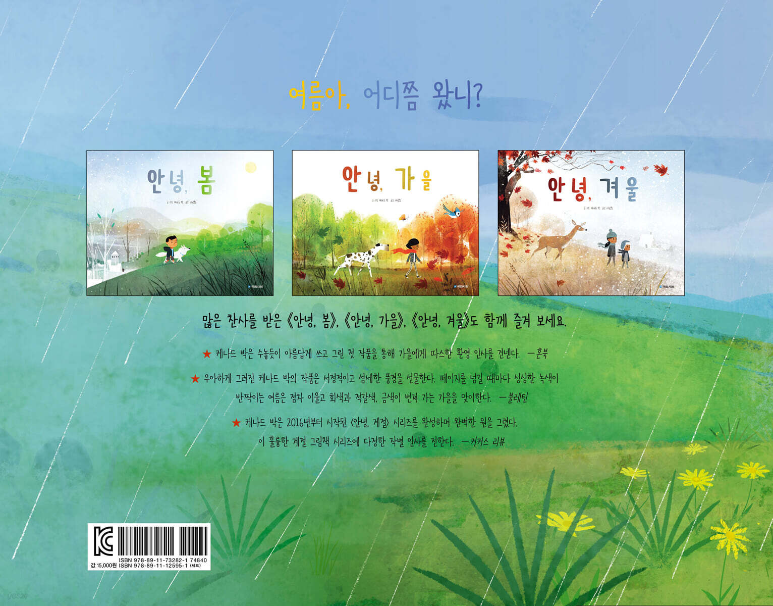 케나드 박은 2016년부터 시작된 〈안녕, 계절〉 시리즈를 완성하며 완벽한 원을 그렸다. 이 훌륭한 계절그림책 시리즈에 다정한 작별 인사를 건넨다. - 커커스 리뷰(Kirkus Reviews) |