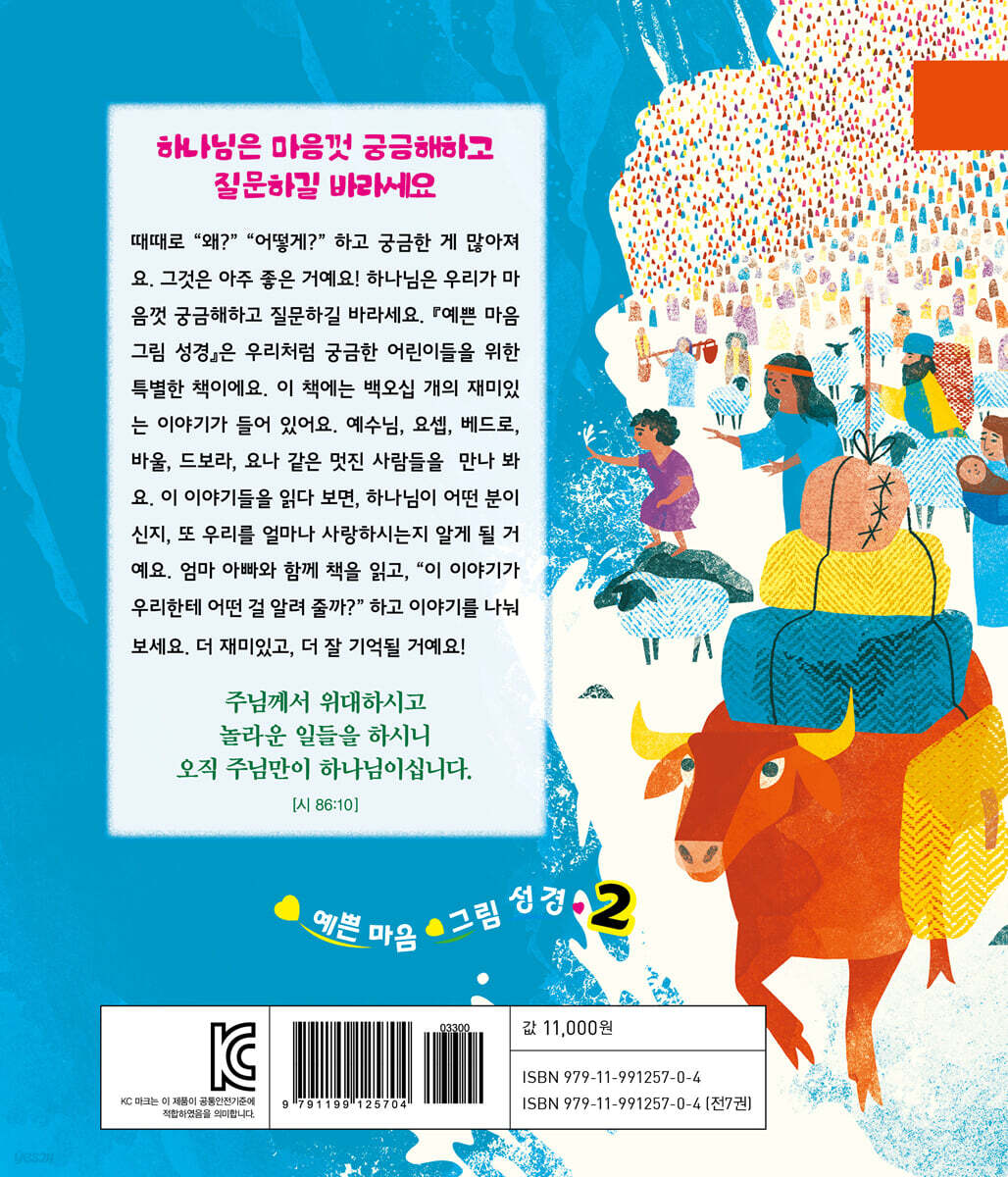 사랑하는 부모님께, 『예쁜 마음 그림 성경』은 자라나는 우리 아이들의 호기심과 신앙을 생각하며 만들었어요. 밝고 재미있고 마음 따뜻해지는 그림들은 아이들이 성경 이야기에 더 흥미를 느끼고 이야기에 쏙 빠져들 수 있도록 도와줄 거예요. 책을 보시면 어떤 이야기가 반복되거나, 이야기 순서가 조금 헷갈린 듯 느끼실 수도 있어요. 특히 신약성경 이야기에서 그런 경우가 있을 거예요. 일반적으로 어린이를 위한 성경 이야기 책에서는 성경에 나오는 여러 비슷한 이야기들을 하나로 합쳐서 마치 한 편의 긴 이야기처럼 보이게 하는 경우가 많아요. 하지만 성경은 그렇게 쓰여진 책이 아니에요. 예를 들어 이 책에서는 종려 주일 이야기가 세 번 나와요. 원래 성경에는 종려 주일 이야기가 네 번 나오지만, 이 책에서는 마태복음, 마가복음, 요한복음에 나오는 세 가지 버전을 골라 담았어요. 이렇게 한 이유는 성경이 한 사람의 이야기만 있는 것이 아니라, 하나님이 우리 모두를 사랑하신다는 소중한 이야기가 다양한 시각으로 전해지고 있다는 것을 보여 주기 위해서예요. 부모님께서 자녀와 함께 이 책을 읽으면서 하나님의 사랑을 더 깊이 느끼고, 소중한 대화를 나누는 시간이 되기를 소망합니다. 작가의 말 어린이 여러분에게 안녕! 반가워요! 여러분은 혹시 정말 궁금한 게 생긴 적이 있나요? 세상과 주변에 있는 모든 것들이 너무너무 신기하게 느껴진 적은요? 하나님이 어떻게 모든 걸 다 하실 수 있는지 생각해 본 적 있나요? 이런 질문들이 바로 ‘호기심’이고 궁금해하는 마음의 좋은 예예요. ‘궁금해하는 마음’이란 믿음과 세상에 대해 상상하고 더 알고 싶은 마음이에요. 『예쁜 마음 그림 성경』을 읽으면서도 여러분은 궁금해할 수 있고 마음대로상상할 수 있어요. 『예쁜 마음 그림 성경』은 여러분을 위해 특별히 준비했어요. 『예쁜 마음 그림 성경』을 통해 여러분은 예수님, 요셉과 그의 형제들, 베드로와 바울, 드보라와 요나, 그리고 많은 사람들의 이야기를 만나게 될 거예요. 분명 이 이야기들은 여러분이 하나님과 하나님의 사랑에 대해 배우는 데 도움을 줄 거예요! 이 이야기는 언제든지, 그리고 여러 번 읽을 수 있어요. 읽을 때마다 “이 이야기가 오늘 나에게 어떤 것을 알려주지?” 하고 궁금해하면 새로운 것을 발견하게 될 거예요. 그럼 우리 이야기 속에서 만나요! - 여러분의 친구, 브리트니 스카이 Brittany Sky |