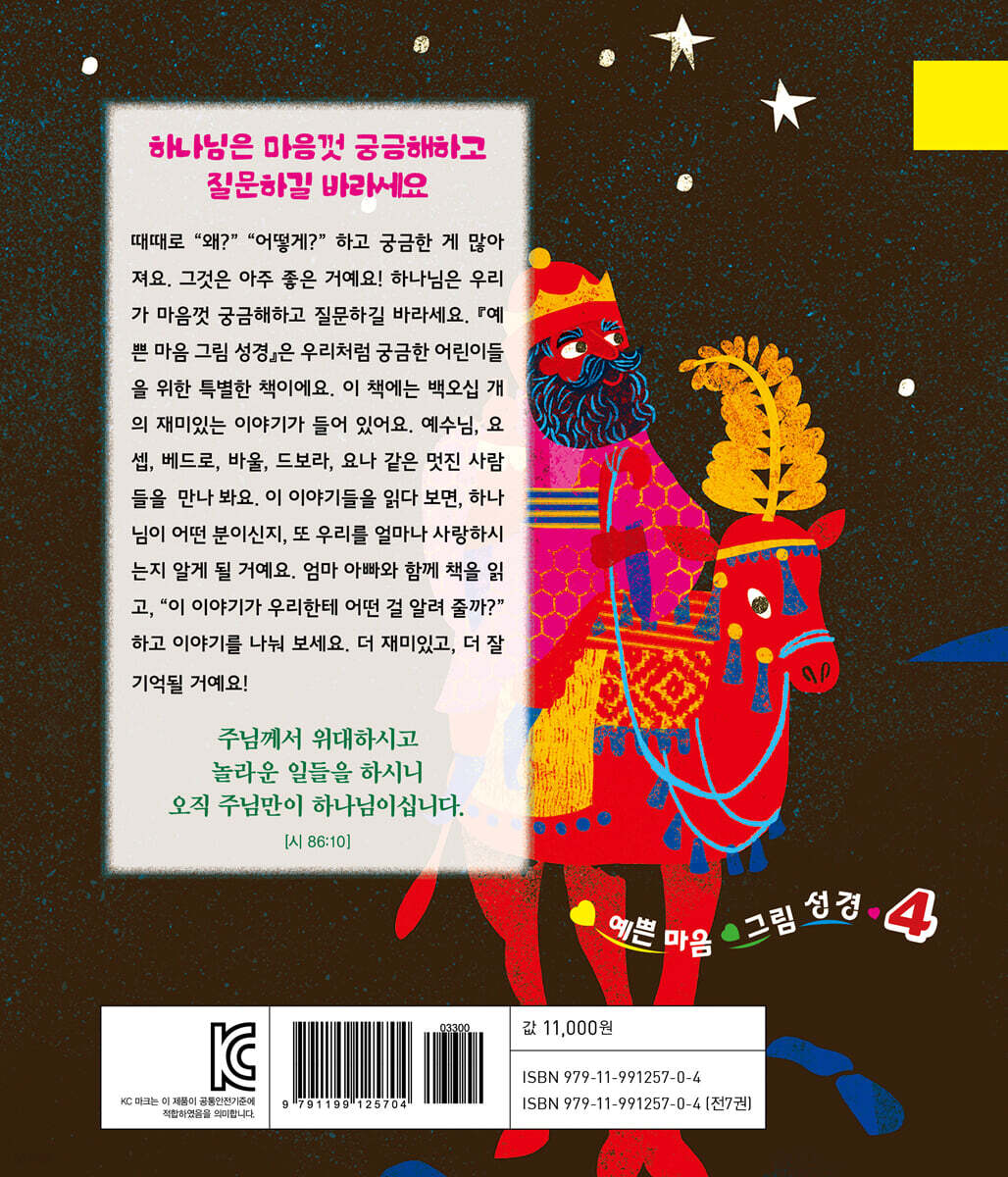 사랑하는 부모님께, 『예쁜 마음 그림 성경』은 자라나는 우리 아이들의 호기심과 신앙을 생각하며 만들었어요. 밝고 재미있고 마음 따뜻해지는 그림들은 아이들이 성경 이야기에 더 흥미를 느끼고 이야기에 쏙 빠져들 수 있도록 도와줄 거예요. 책을 보시면 어떤 이야기가 반복되거나, 이야기 순서가 조금 헷갈린 듯 느끼실 수도 있어요. 특히 신약성경 이야기에서 그런 경우가 있을 거예요. 일반적으로 어린이를 위한 성경 이야기 책에서는 성경에 나오는 여러 비슷한 이야기들을 하나로 합쳐서 마치 한 편의 긴 이야기처럼 보이게 하는 경우가 많아요. 하지만 성경은 그렇게 쓰여진 책이 아니에요. 예를 들어 이 책에서는 종려 주일 이야기가 세 번 나와요. 원래 성경에는 종려 주일 이야기가 네 번 나오지만, 이 책에서는 마태복음, 마가복음, 요한복음에 나오는 세 가지 버전을 골라 담았어요. 이렇게 한 이유는 성경이 한 사람의 이야기만 있는 것이 아니라, 하나님이 우리 모두를 사랑하신다는 소중한 이야기가 다양한 시각으로 전해지고 있다는 것을 보여 주기 위해서예요. 부모님께서 자녀와 함께 이 책을 읽으면서 하나님의 사랑을 더 깊이 느끼고, 소중한 대화를 나누는 시간이 되기를 소망합니다. 작가의 말 어린이 여러분에게 안녕! 반가워요! 여러분은 혹시 정말 궁금한 게 생긴 적이 있나요? 세상과 주변에 있는 모든 것들이 너무너무 신기하게 느껴진 적은요? 하나님이 어떻게 모든 걸 다 하실 수 있는지 생각해 본 적 있나요? 이런 질문들이 바로 ‘호기심’이고 궁금해하는 마음의 좋은 예예요. ‘궁금해하는 마음’이란 믿음과 세상에 대해 상상하고 더 알고 싶은 마음이에요. 『예쁜 마음 그림 성경』을 읽으면서도 여러분은 궁금해할 수 있고 마음대로상상할 수 있어요. 『예쁜 마음 그림 성경』은 여러분을 위해 특별히 준비했어요. 『예쁜 마음 그림 성경』을 통해 여러분은 예수님, 요셉과 그의 형제들, 베드로와 바울, 드보라와 요나, 그리고 많은 사람들의 이야기를 만나게 될 거예요. 분명 이 이야기들은 여러분이 하나님과 하나님의 사랑에 대해 배우는 데 도움을 줄 거예요! 이 이야기는 언제든지, 그리고 여러 번 읽을 수 있어요. 읽을 때마다 “이 이야기가 오늘 나에게 어떤 것을 알려주지?” 하고 궁금해하면 새로운 것을 발견하게 될 거예요. 그럼 우리 이야기 속에서 만나요! - 여러분의 친구, 브리트니 스카이 Brittany Sky |