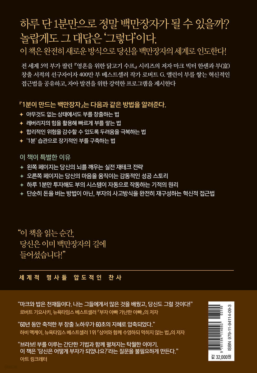부자가 되는 길은 길고 복잡하다고 생각하셨나요? 『1분이 만드는 백만장자』는 그 오랜 편견을 깨고, 단 1분의 습관으로 부자가 될 수 있는 길을 제시합니다.