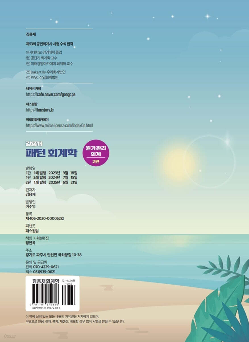 패턴 01. 제조원가의 흐름 패턴 02. 보조부문원가의 배분 CHAPTER 02 변동원가계산과 초변동원가계산 패턴 03. 변동원가계산 및 초변동원가계산 패턴 04. 원가계산 방법별 이익 차이 조정 패턴 05. 변동원가계산 말문제 CHAPTER 03 CVP분석 패턴 06. CVP분석 패턴 07. 법인세를 고려한 CVP분석 패턴 08. 복수제품 CVP분석 패턴 09. 전부원가계산에서의 CVP분석 CHAPTER 04 원가추정 패턴 10. 고저점법 패턴 11. 학습모형 CHAPTER 05 종합원가계산 패턴 12. 종합원가계산 패턴 13. 기초재공품의 완성도 패턴 14. 공손 CHAPTER 06 결합원가계산 패턴 15. 결합원가계산 패턴 16. 부산물 CHAPTER 07 표준원가계산 패턴 17. 기초원가 차이분석 패턴 18. 투입요소가 두 개인 경우 차이 분석 패턴 19. 변동제조간접원가 차이분석 패턴 20. 고정제조간접원가 차이분석 CHAPTER 08 정상원가계산 패턴 21. 정상원가계산 패턴 22. 정상개별원가계산 CHAPTER 09 성과평가 패턴 23. 매출차이분석 패턴 24. 투자중심점의 성과평가 CHAPTER 10 활동기준원가계산 패턴 25. 활동기준원가계산 패턴 26. 활동기준원가계산 말문제 CHAPTER 11 관련원가 패턴 27. 특별주문 패턴 28. 외부구입 패턴 29. 대체가격 패턴 30. 제한된 자원의 사용 CHAPTER 12 예산 패턴 31. 종합예산 패턴 32. 자본예산 CHAPTER 13 불확실성하의 의사결정 패턴 33. 완전정보의 기대가치 CHAPTER 14 전략적 원가관리 패턴 34. 품질원가 패턴 35. 전략적 원가관리 말문제 |