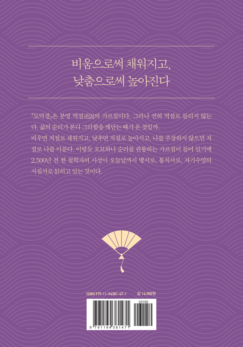 『도덕경』은 분명 역설逆說의 가르침이다. 그러나 전혀 역설로 들리지 않는다. 삶의 순리가 본디 그러함을 깨닫는 때가 온 것일까. 비우면 저절로 채워지고, 낮추면 저절로 높아지고, 나를 주장하지 않으면 저절로 나를 이룬다. 이렇듯 오묘하나 순리를 관통하는 가르침이 들어 있기에 2,500년 전 한 철학자의 사상이 오늘날까지 병서로, 통치서로, 자기수양의 지침서로 읽히고 있는 것이다. 역설逆說로 전하는 순리의 가르침 누구나 한 번쯤은 들어봤다시피 노자는 『도덕경』을 통해 ‘무위자연無爲自然’을 이야기한다. 말 그대로 억지로 하고자 함 없이 만물이 자연스럽게 흘러가는 대로 두는 것이다. 어쩌면 이 말은 뜬구름 잡는 것처럼 들릴 수도 있다. 그러나 『도덕경』을 한번 심도 있게 읽어보면 그것이 삶의 순리임을 알게 된다. 무언가를 하고자 함으로, 무언가를 이루고자 함으로, 무언가를 갖고자 함으로, 무언가를 욕심냄으로 분열이 일어나고, 분쟁이 일어나며, 스스로 괴로움 속으로 말려들어가는 것이다. 그렇다면 현대사회에서 이런 물욕과 과시욕과 권세욕을 내려놓고 ‘상선약수上善若水’의 가르침처럼 살아갈 수 있는가? 『도덕경』이 2,500년의 시간을 가로질러 오늘날까지 이어져 온다는 그 사실에 답이 있다. 노자의 말씀에 귀를 기울이다 보면 비울 때 채워지고, 낮출 때 높아지고, 나를 주장하지 않을 때 더욱 드러나게 된다는 그 역설逆說이 진리로 다가온다. |
