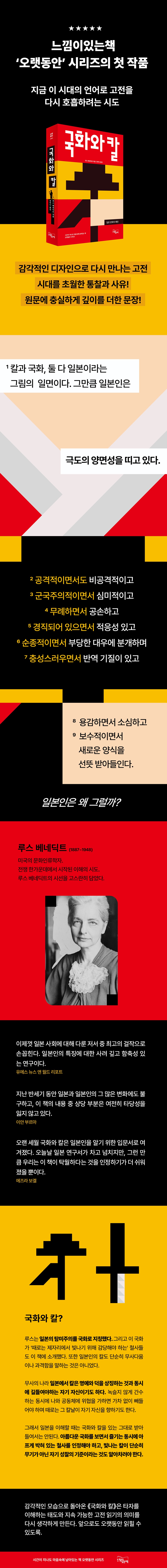 타인의 질서를 있는 그대로 바라보고, 그 안에 담긴 논리를 천천히 읽어내려는 시도에 가깝다. 이해는 분석보다 느리고, 판단보다 조용한 태도다. 우리는 일본을 비판하면서도 일본 문화를 선망하고, 가깝다고 말하면서도 좀처럼 가까워지지 못했다. 그 모든 이중성과 거리감 속에서, 우리가 잃어버린 단어는 단 하나 ‘이해’였다. 낯설다고 해서 틀린 것은 아니다. 그 문장 하나를 끝까지 지켜낸 책이 있었다. 베네딕트는 일본을 하나의 체계로 정리하거나 단정하지 않는다. 그녀는 다만, 외부자의 눈으로 그 안을 조심스럽게 들여다보고, 왜 그런 방식으로 살아가는지를 질문하는 데서 멈춘다. 수치와 체면, 의무와 의리, 은혜와 빚. 그 모든 낯선 언어를 끌어와서, 결국엔 인간에 대한 오래된 이해의 문장을 만들어낸다. 전쟁 속에서 피어난, 가장 인간적인 시선. 『국화와 칼』은 전쟁 속에서 태어났지만, 그 속에서 가장 인간적인 태도를 지켜낸 책이었다. 우리는 이 책을, 그 태도를 기억하고 싶어서 다시 꺼내 들었다. 지금 이 시대는 타인의 말을 듣기보다, 빠르게 단정하고, 쉽게 배척하는 방향으로 흘러가고 있다. 그 안에서 『국화와 칼』은 ‘이해하려는 태도’의 가치를 다시 떠올리게 한다. 느낌이있는책은 이 책을 고전 리메이크 시리즈 ‘오랫동안’의 첫 작품으로 선택했다. 지금 다시 묻고 싶었기 때문이다. ‘우리는 타인을 이해하려는 마음을 잃어버린 건 아닐까?’ |