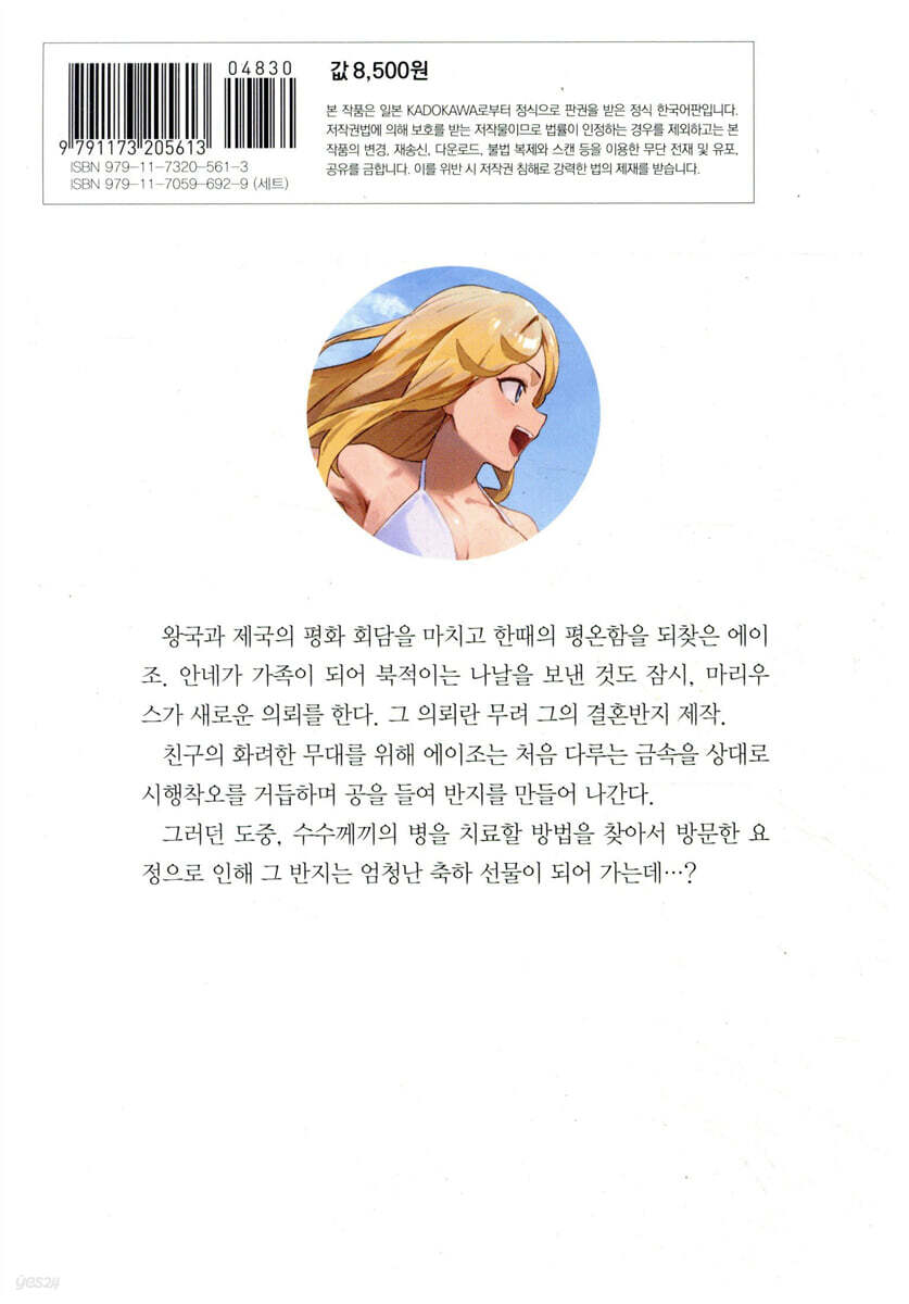 1장 『일상』의 아침 2장 지켜진 약속 3장 첫 번째 사람 4장 『신뢰(迅雷)』의 갑옷 5장 반지의 의뢰인 6장 메기스티움 7장 요정 8장 『다녀왔어』 9장 히히이로카네 10장 여름이 온다 11장 심야의 방문자 12장 요정, 마을에 가다 13장 결혼식 14장 축하연은 떠들썩하게 15장 연회의 끝 16장 모두의 『다녀왔어』 에필로그 숲의 신부 |