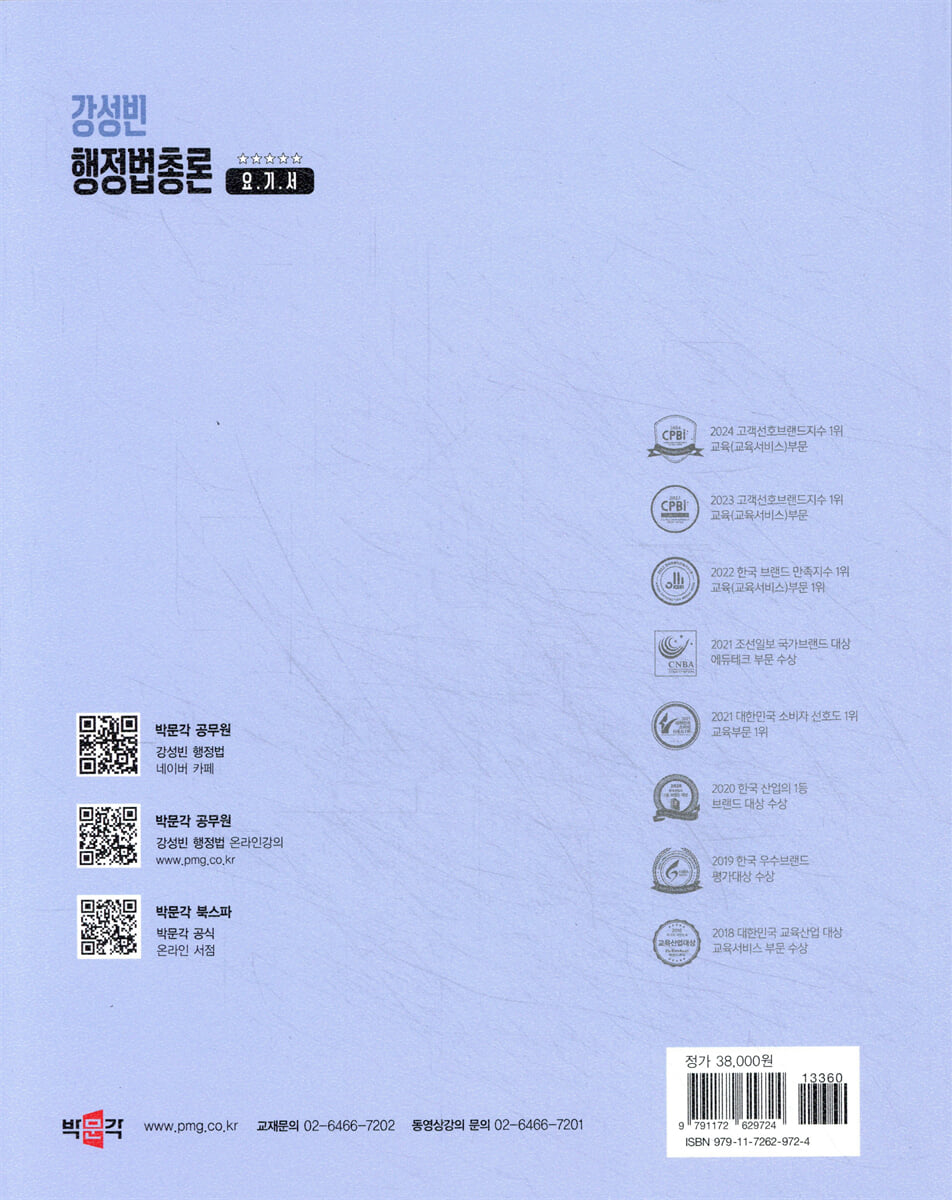 한층 더 강화된 「2026 박문각 공무원 강성빈 행정법총론 요.기.서」가 공무원 합격에 많은 도움이 되기를 바랍니다. |