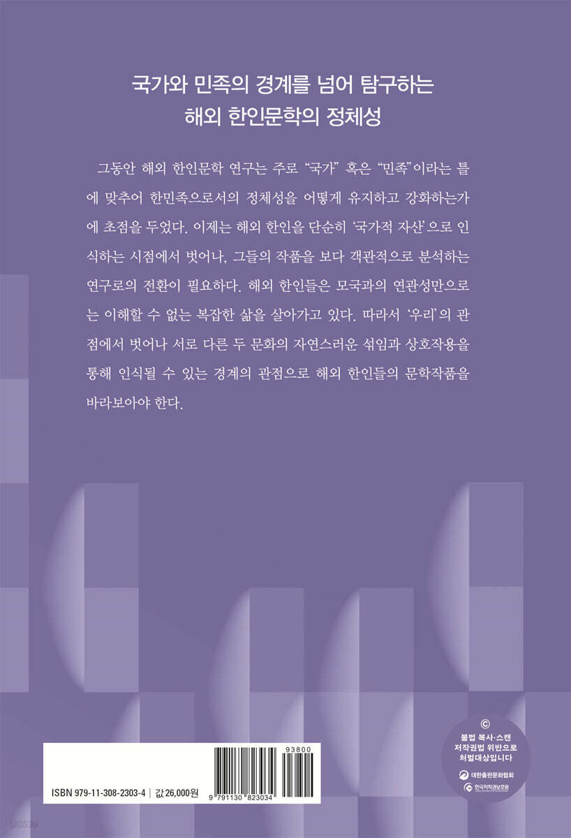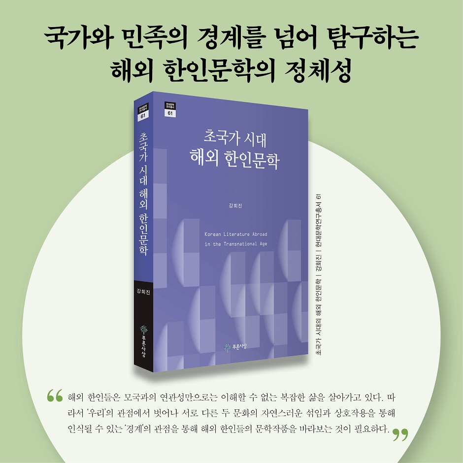 한국인의 활동 무대는 한반도를 넘어 세계 각국으로 확장되고 있다. 외세의 강요에 의해, 또는 수탈을 피하기 위해 어쩔 수 없이 국경을 넘었던 초기 이주민과는 달리, 이제는 자발적이고 능독적으로 해외에 진출하는 시대이다. 이주 역사의 변천과 더불어 해외 한인문학 역시 변화하고 있다. 예전에는 한민족 정체성을 어떻게 유지하고 강화하는가에 초점을 맞추어 해외 한인문학을 바라보았다면, 이제는 해외 한인들의 복잡한 문화와 상황을 형상화한 해외 한인문학 작품을 국가 중심적, 민족 중심적 사고를 넘어서 객관적이고 유연한 시각으로 다양한 문화적 현상을 탐구하는 트랜스내셔널 인문학이 주목받고 있다.